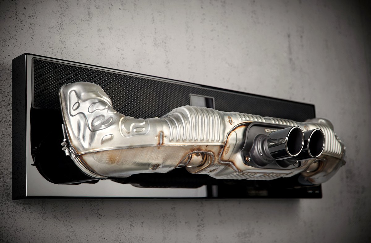 Компания Porsche объявила о выпуске саундбара 911 Soundbar 2.0 Pro. У него необычный дизайн: в саундбар вмонтирован глушитель, причем настоящий.