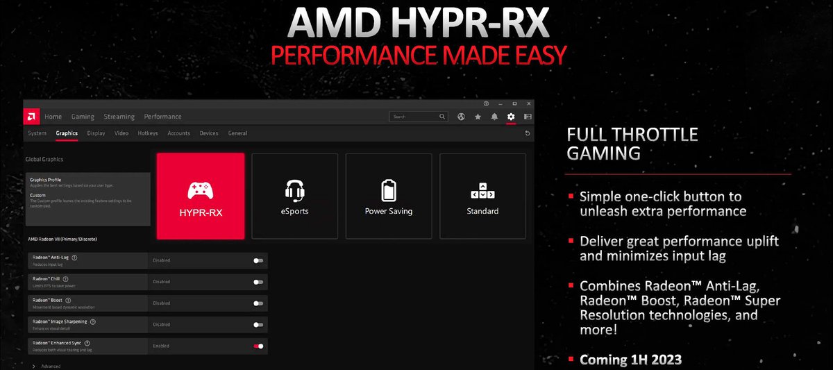 Управлять HYPR-X можно будет через стандартное приложение AMD. Игроки получат возможность включать технологию только в определенных играх. Релиз HYPR-X намечен на первую половину 2023 года.