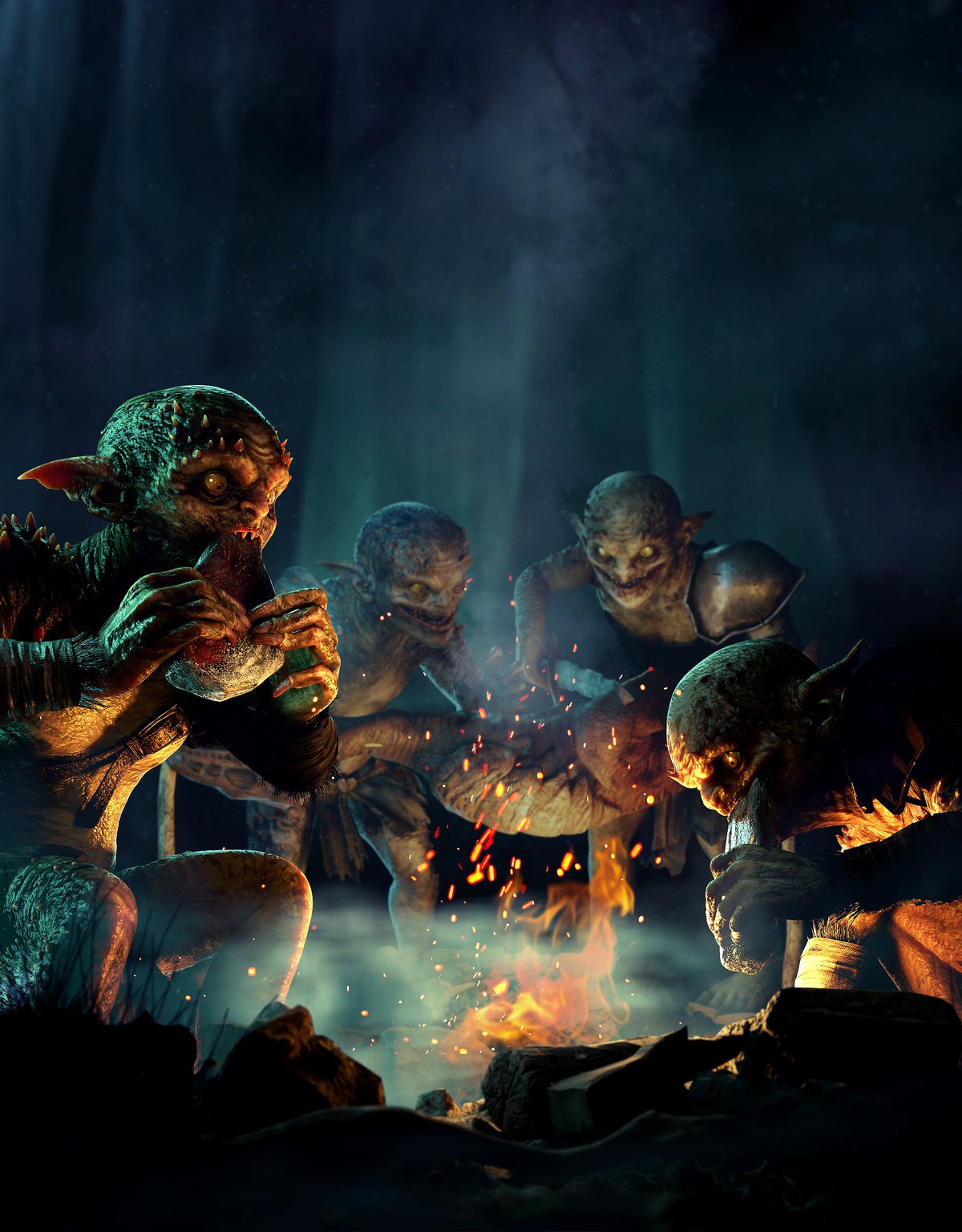 Еще один рендер, уже сегодняшний, посвящен гоблинам. Маленькие, но агрессивные существа могут наваливаться на искателя приключений толпой и атаковать со всех сторон, нанося удары дубинами и мечами.