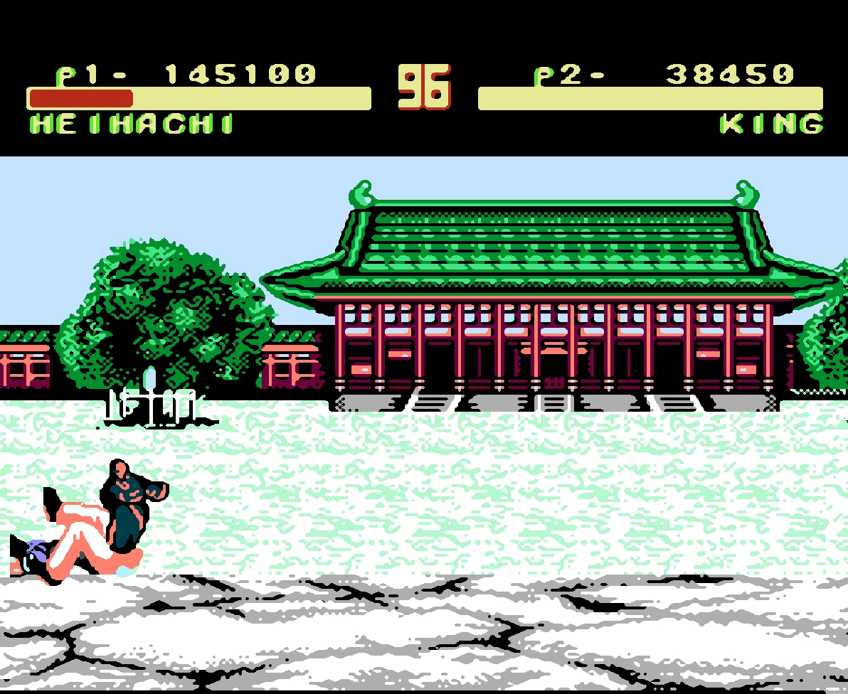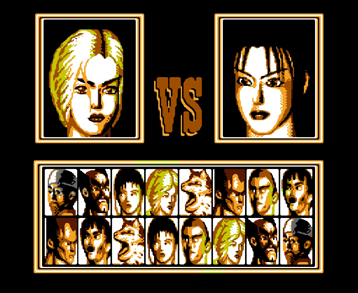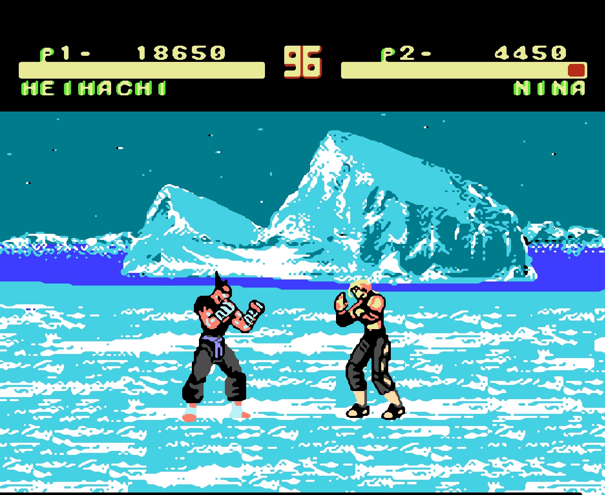 В ростере у нас неполный список персонажей первой части Tekken: Ванг Джи Рей, Хейхачи и Казуя Миссима, Мишель Чан, Нина Виллиамс, Кинг, Пол Феникс и Маршал Ло. Интересно то, что нет подбоссов и прочих некоторых персонажей первой части. Оно и неудивительно, ведь если обратить внимание на 8-бит порты того же Mortal Kombat, то там часто вырезали героев. Портировать непортируемое, да ещё и впихнуть не впихиваемое – на такое даже Тайваньцы не способны.