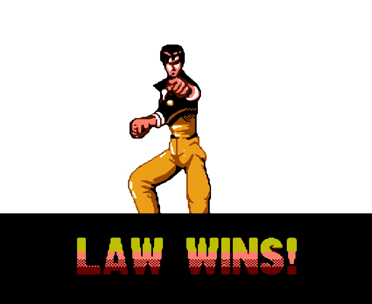 Признаюсь, игру я не прошел, застопорился на Акире, боссе игры и чем кончается игра смотрел уже на YouTube. А кончается игра нарисованным чёрно-белым портретом героя, за которого прошли аркаду.