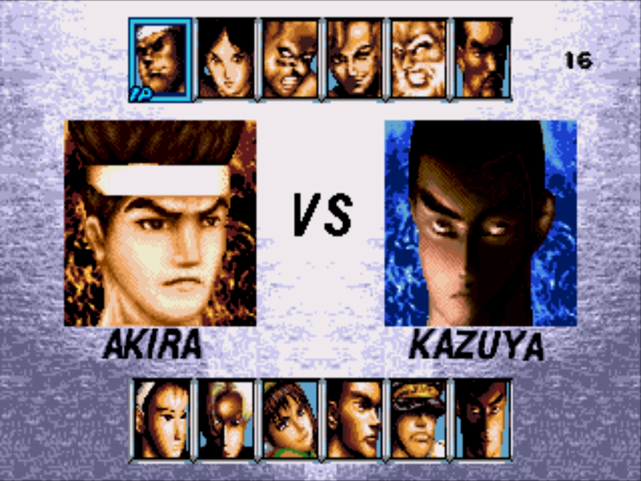 В ростер включены герои: Акира, Пай Чан, Вульф, Джекки Брайант и Шун Ди из Virtua Fighter 2, Хейхачи и Казуя Мисима, Джун Казама, Ли Чаолан и Пол Феникс из Tekken 2, а также Бах и Ханей из Fighting Vipers... Вот к последним двум у меня вопросы, ведь игра называется не Fighters Megamix VS TEKKEN 2, да и чтобы поиграть в Fighting Vipers Тайваню нужно было обзавестись Sega Saturn... Впрочем, каша тут ещё та и я думаю не стоит на этом заострять внимание.