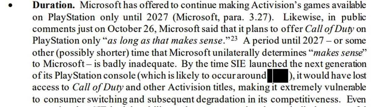 Игровое подразделение Sony направило британскому антимонопольному регулятору многостраничный документ, посвященный сделке Microsoft и Activision Blizzard. В документе, заметил аналитик Пирс Хардинг-Роллс, есть указание на то, когда может появиться следующее поколение PlayStation.