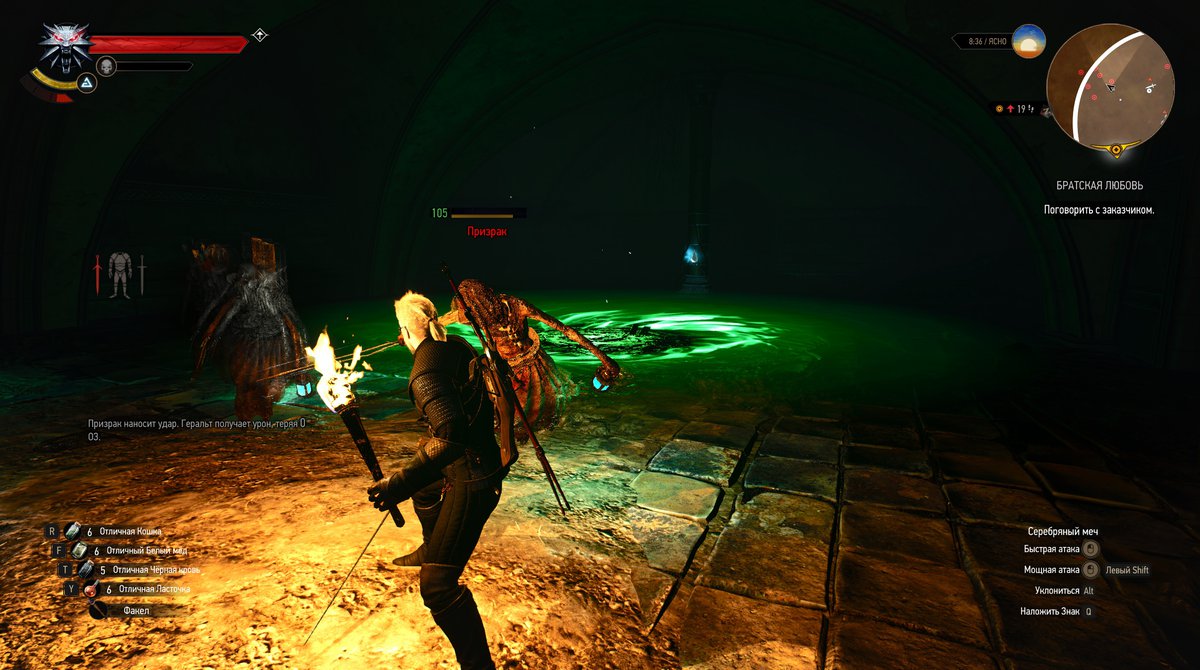 На верхних уровнях бастиона нет ничего примечательного. Но если осторожно спуститься в подвал (иногда придется просто падать вниз), то Геральта атакуют призраки. С ними надо вести себя осторожно — призраков невозможно убить, а бьют они больно.