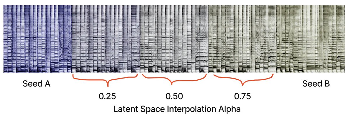 Треки, сгенерированные ИИ, могут зацикливаться и плавно сменять друг друга. Разработчики добились этого эффекта благодаря интерполяции и сглаживанию границ между спектрограммами.