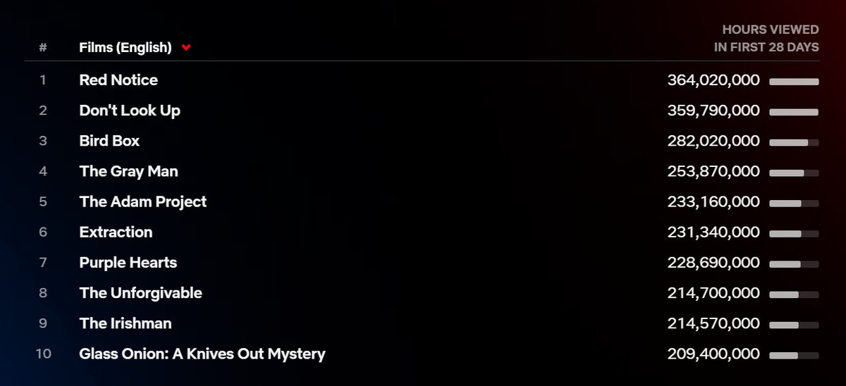 Даже если за оставшиеся недели (Netflix считает топ по первым 28 дням показа) «Достать ножи 2» соберет только 82 миллиона часов просмотра, это позволит фильму выйти на третью строчку, обойдя «Птичий короб».