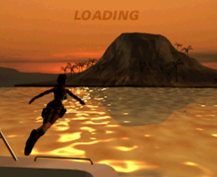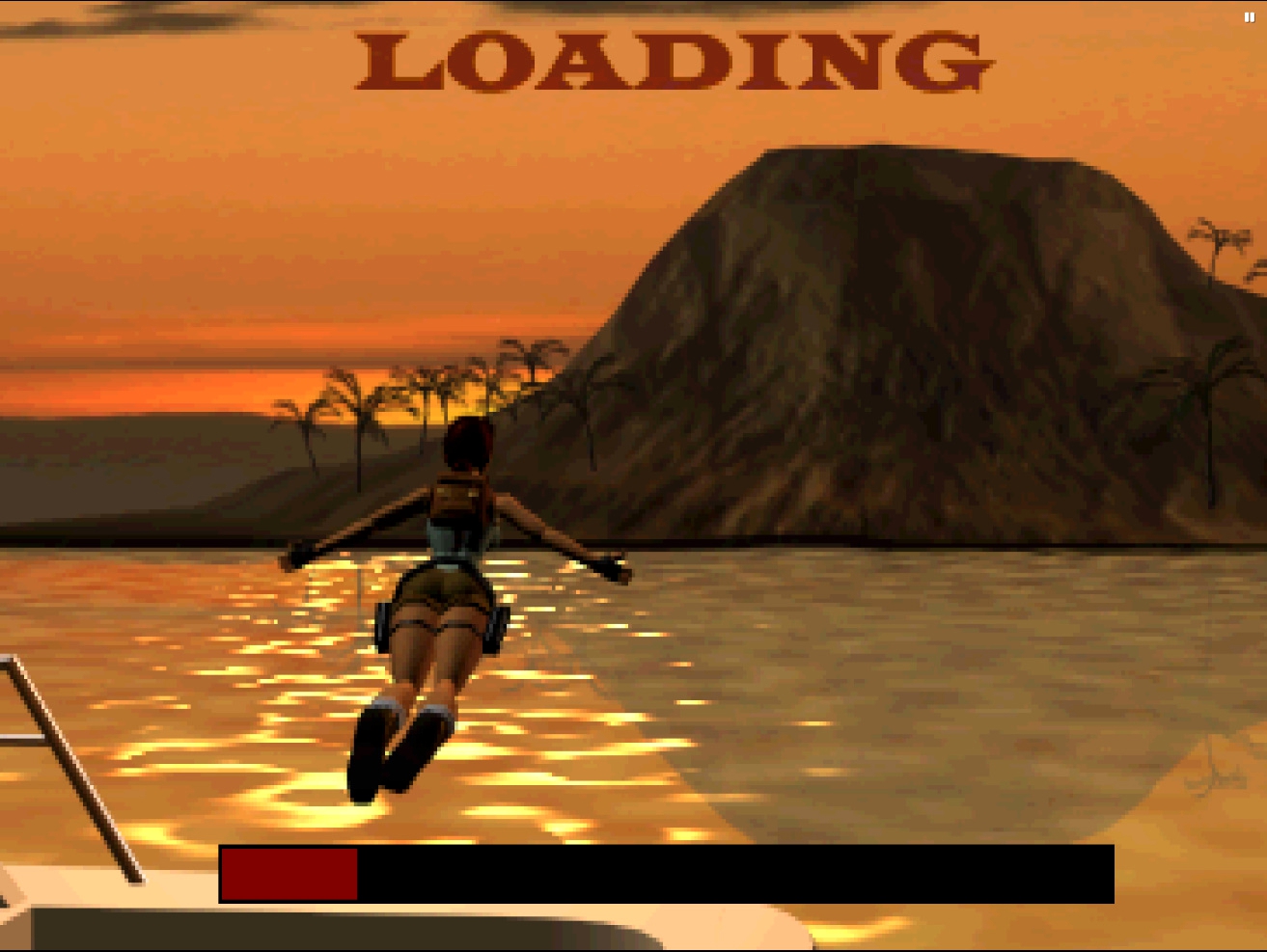 Аналогично предыдущему примеру, отличается экран загрузки главы "Великая пирамида". На этом рендере, Лара, во время ныряния, принимает другую позу: