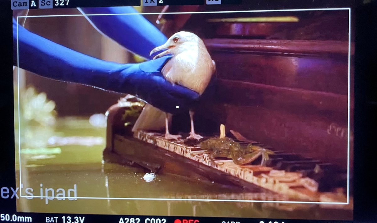 Дракманн, ставший режиссером второй серии The Last of Us (это был его дебют как постановщика), показал фотографию со съемок — с тем самым роялем и чайкой. По словам Нила, на самом деле перед чайкой не труп лягушки, а муляж; возможно, именно это смутило птицу.