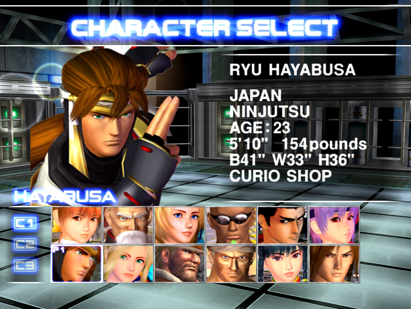 2. Рю Хаябуса, в отличие от Тины, в прототипе ближе к версии Naomi, только смотрит в другую сторону. На DreamCast он уже стоит в другой позе.