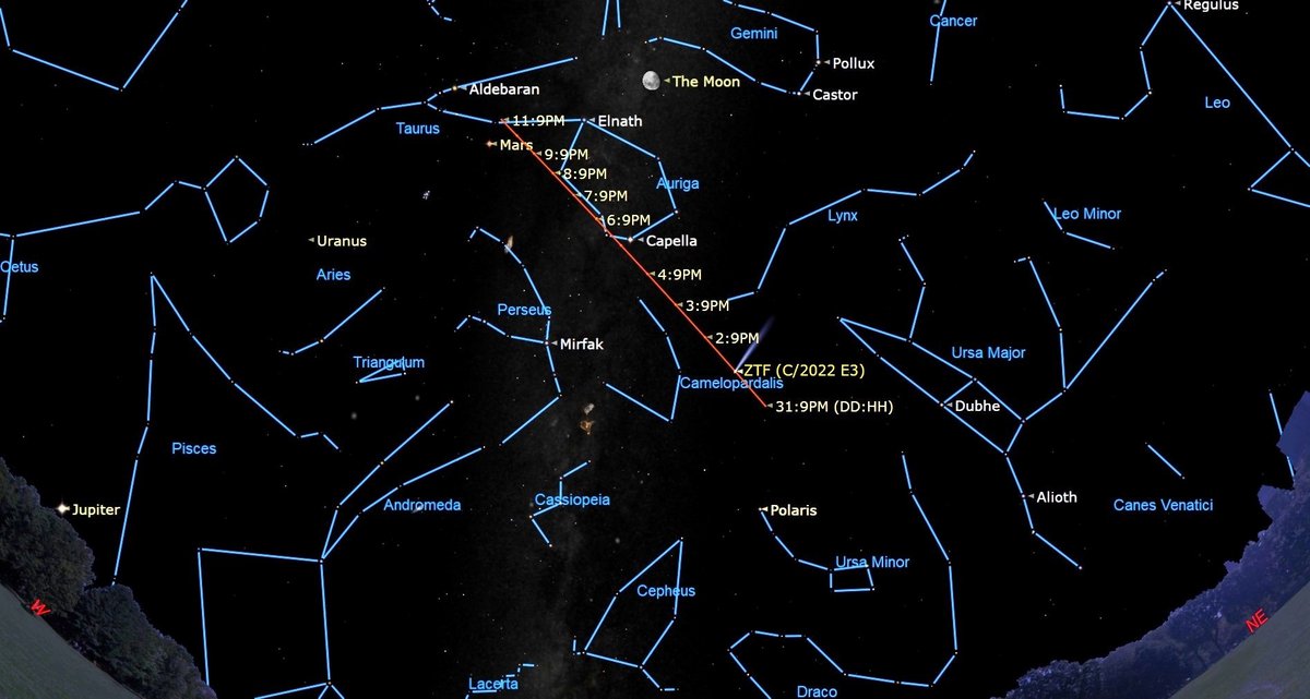 Комета C/2022 E3 (ZTF), в последний раз пролетавшая мимо Земли в районе 50 тысяч лет назад, вот-вот приблизится на минимальное расстояние к нашей планете. Ожидается, что C/2022 E3 (ZTF) будет ближе всего к Земле 2 февраля.