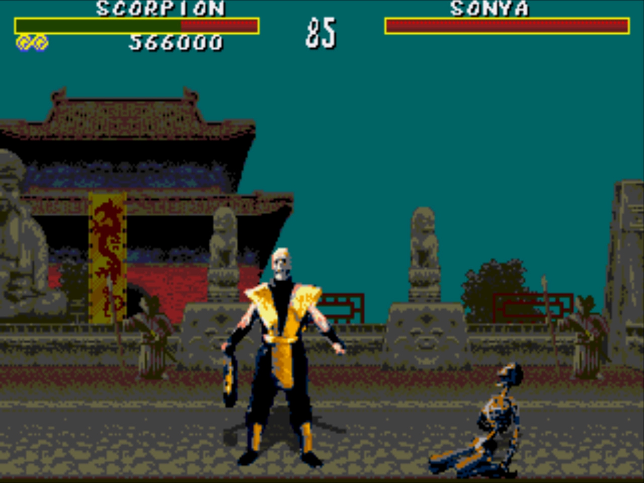 Преданный фанат вспомнит, что подобное упрощение графики в финальной версии для Mega Drive всё-таки можно встретить. В режиме теста силы у Скорпиона палитра совпадает с той, которая есть в прототипе. Однако, Саб-Зиро, в тесте силы, в финальной версии, окрашен в нормальную человеческую кожу, в прототипе наоборот.