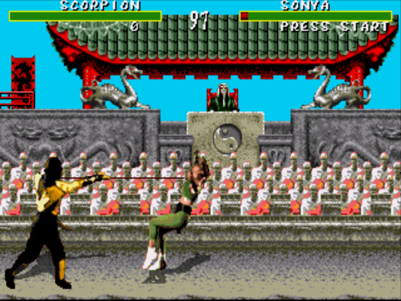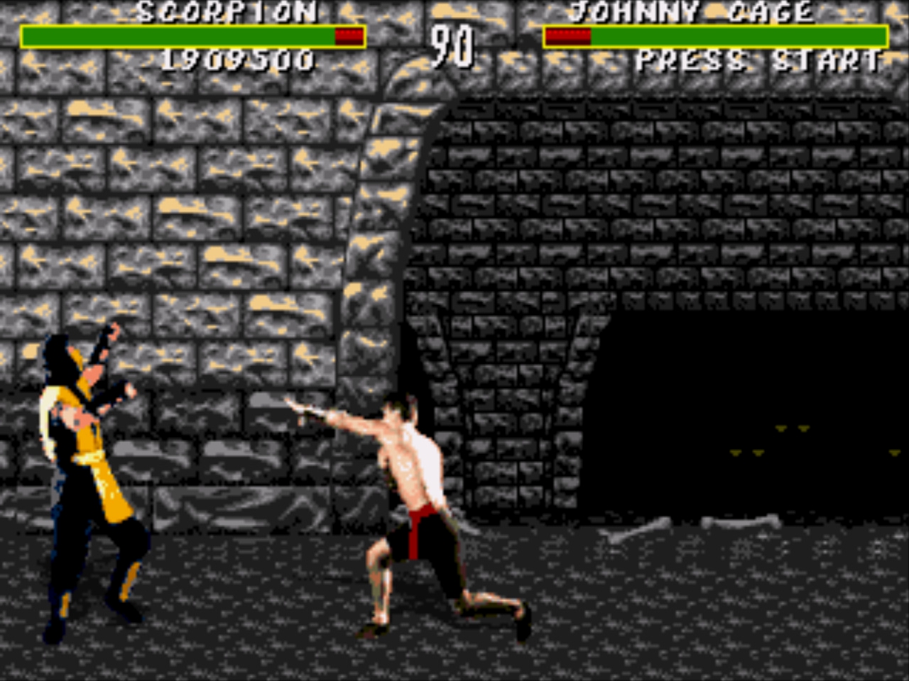 Переходим к отличиям, которые можно показать, а они появляются в ростере: Саб-Зиро и Скорпион имеют другую палитру. Проще говоря, у Скорпиона и Саб-Зиро кожа окрашена в цвет костюмов. Это сделано для того, чтобы сэкономить на мощности консоли, подобным методом пираты портировали игру на Nintendo Entertainment System.