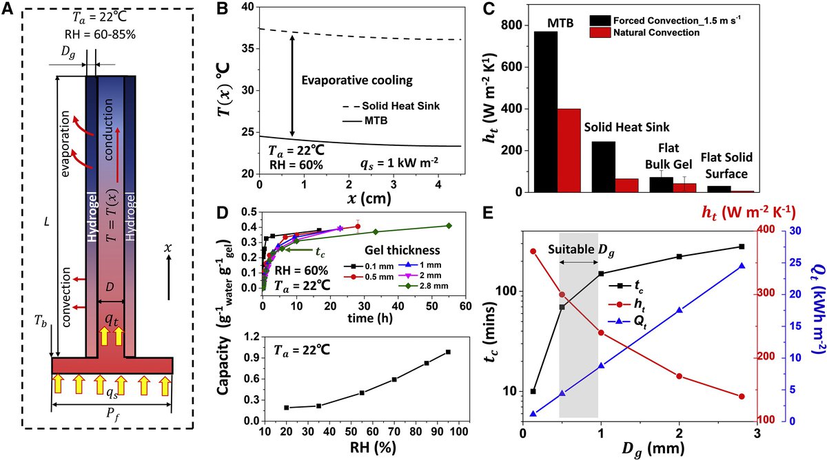 Как объясняют исследователи, принцип работы гидрогелевой термальной батареи напоминает теплообмен у животных. Когда температура повышается, гидрогель выделяет воду — она испаряется и устройство охлаждается. Когда температура снижается, гидрогель впитывает влагу из воздуха.