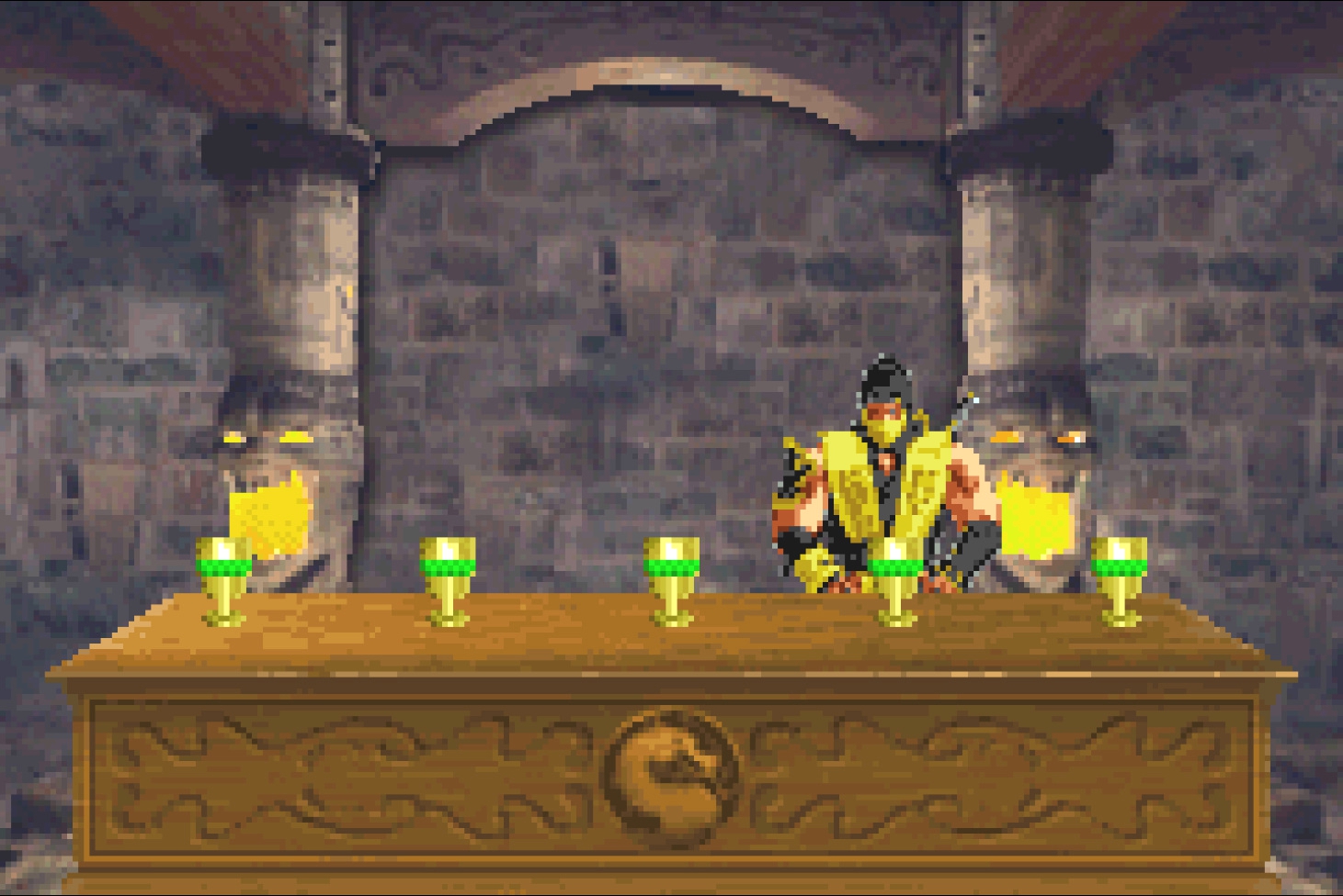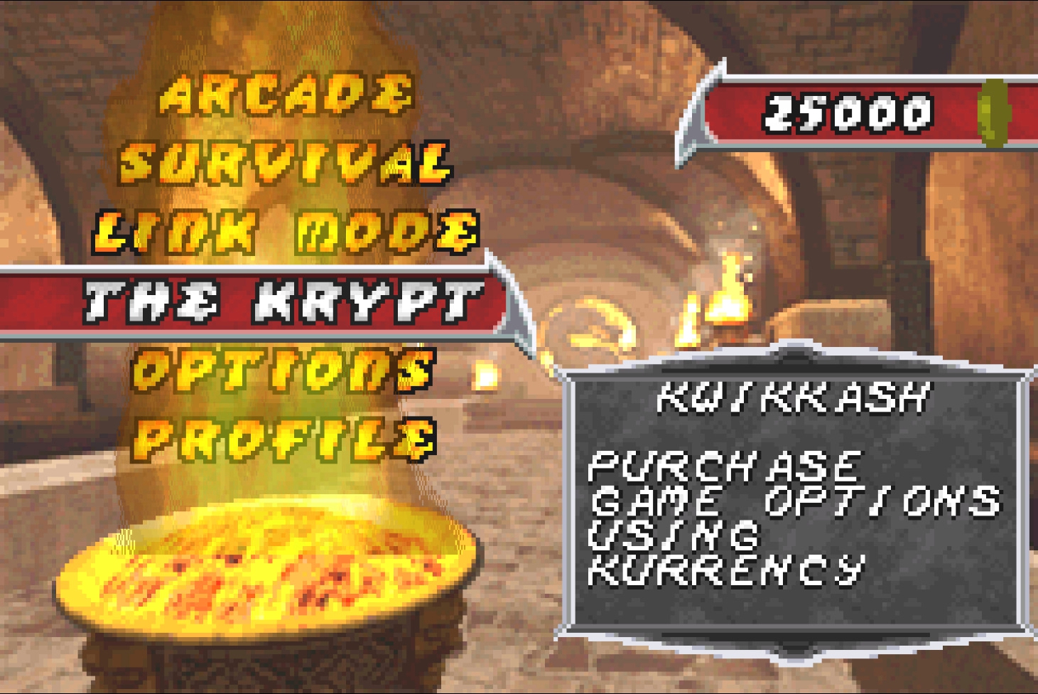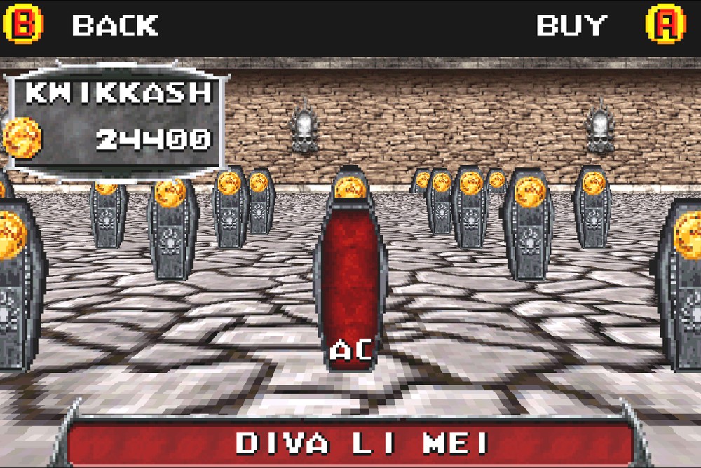 Склеп укорочен, где-то половина склепа была вырезана, что на самом деле тоже плюс. В Deadly Alliance, если её сравнивать с Deception и Armageddon, самый большой склеп. В оригинальной игре, в склепе, было много пустых гробов, что очень бесило меня при прохождении. В оригинальной версии также, в склепе, было много ненужной фигни, в виде открываемых скриншотов из игры. Как вы понимаете, на картридж всё это не влезет, поэтому всё медиа было вырезано. Весь склеп в GameBoy Advance напичкан гробами со сменой палитры спрайтов героев, локациями и персонажами. Этот ход делает склеп более логичным и побуждает игрока открывать его до конца, а не искать среди гробов самые дорогие, чтобы открыть костюм, локацию или персонажа.