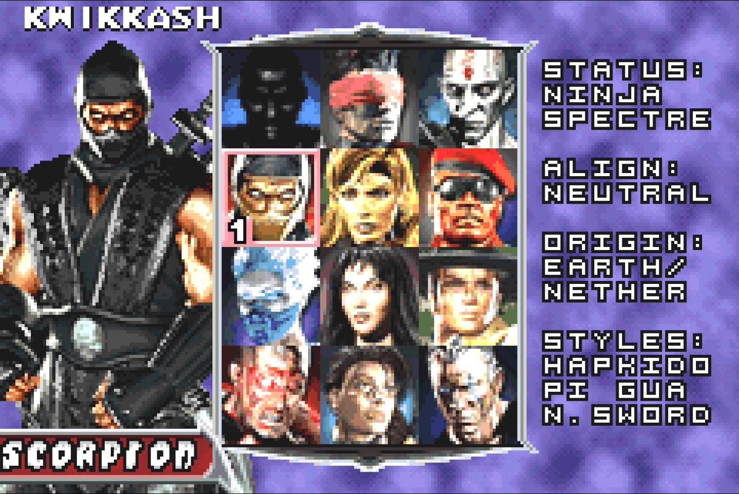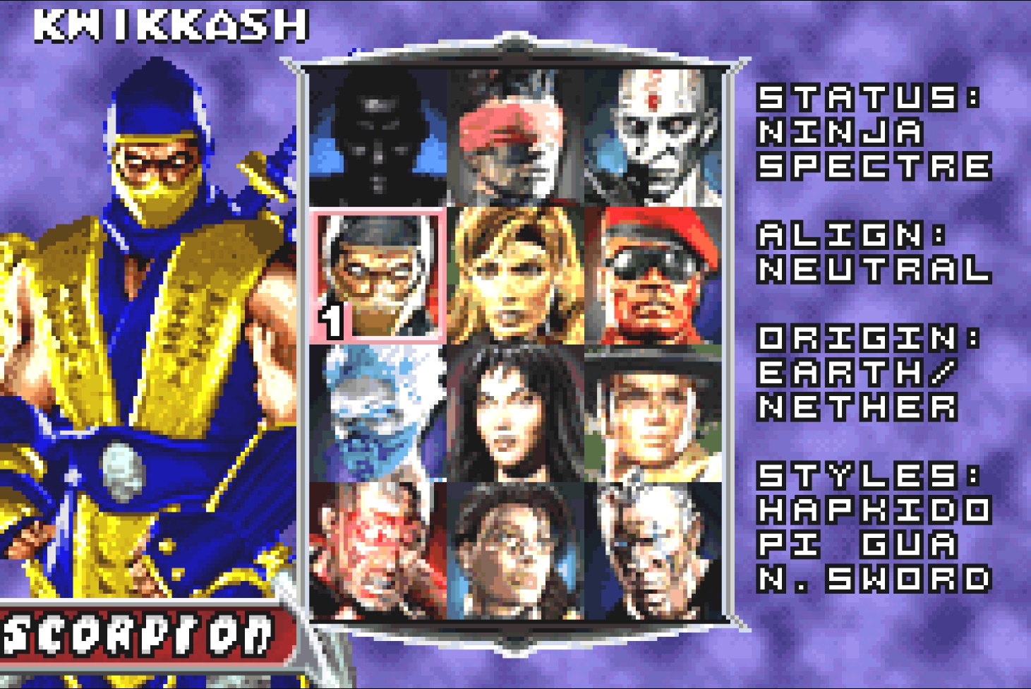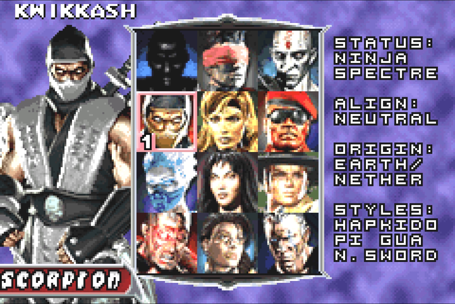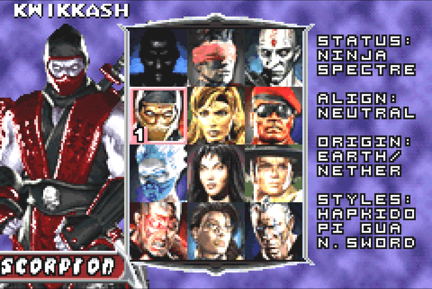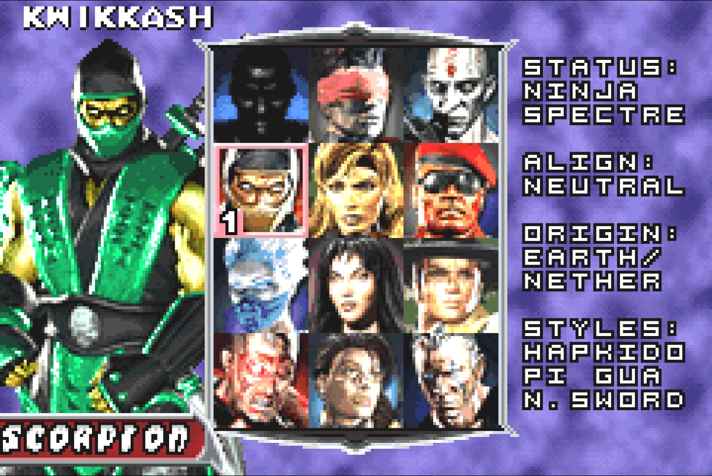 Как и в предыдущем порте, иконки совпадающих с оригинальной игрой персонажами отличаются у: Шан Тсунга (отражена), Кван Чи (отражена), Скорпиона (отражена), Нитары (отражена), Мавадо (отражена), Хсу Хао (другая иконка), Рептилии (отражена) и Драхмина (другая иконка).