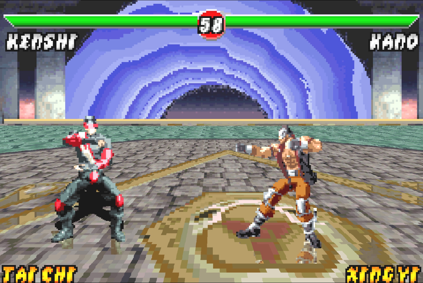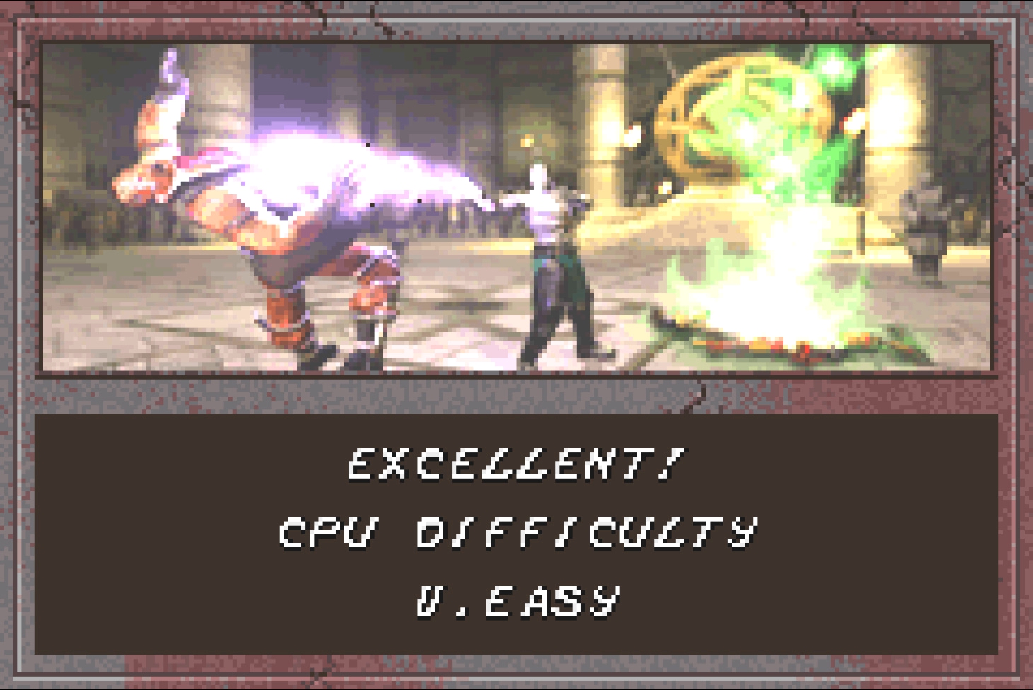 Начнём, как и в прошлый раз, со склепа и режимов. Таг-битва – данный режим появился в серии впервые, даже невзирая на то, что Endurance матчи присутствовали в серии аж с первой части. Но, суть Endurance была в том, чтобы игрок уложил на лопатки двоих соперников за один раунд, без возможности переключения на напарника. В нашем же случае можно сменить напарника. В целом, это просто растягивает матч, но миновать режим, как это было с выживанием – нельзя. Дело в том, что проходя таг-битву нам открываются новые персонажи, добавленные эксклюзивно для GameBoy Advance.