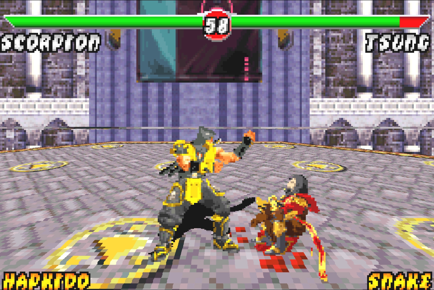 Впрочем, не без отличий, на сей раз нам не нужно выбирать фаталити в стилях, чтобы его выполнить. Это удобно и в стиле классики! В стиле классики ещё то, что все стили, связанные с оружием – вырезаны. Разумеется, вырезание оружия не есть хорошо, просто потому, что без оружия эта часть становится даже хуже Mortal Kombat 4. Выходит так, что в этой игре нет оружия, повреждений, уникальной функции протыкания врага и нет фаталити на арене... Худший Mortal Kombat! Правда, касается это только GameBoy Advance, в оригинальной игре всё куда лучше.