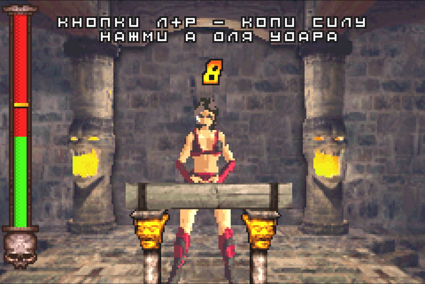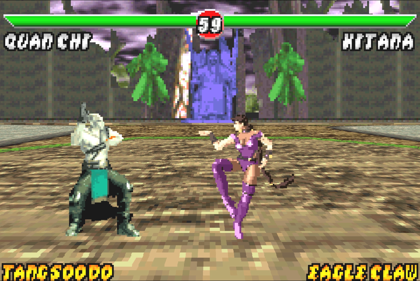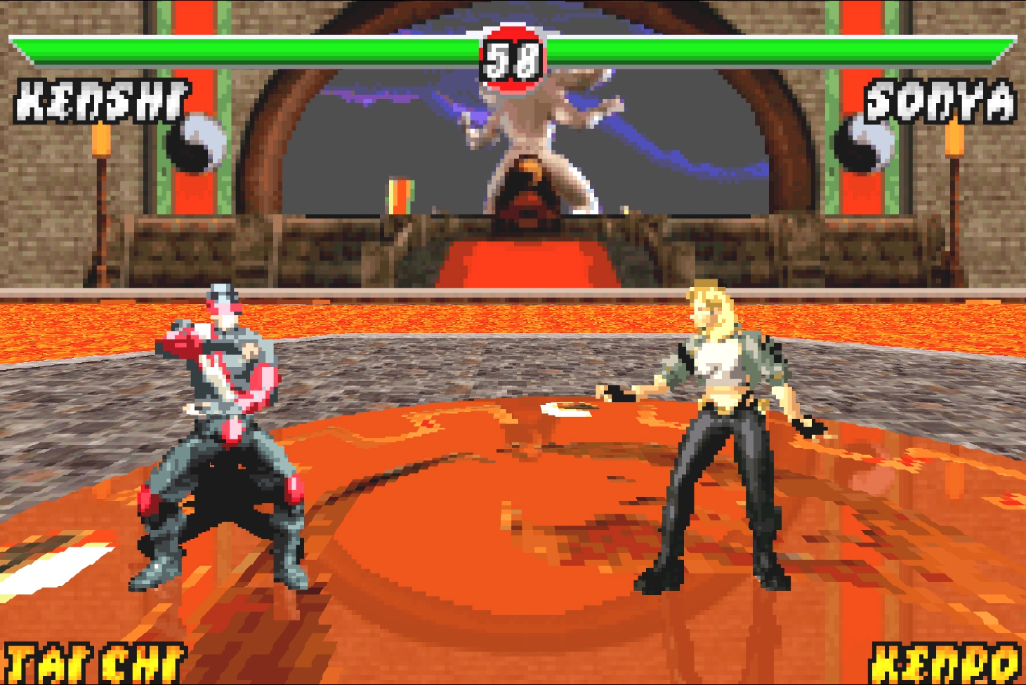 В тесте силы женские персонажи используют руки, а не ноги. Дело в том, что отрисовать кадры удара ногой более затратное дело, нежели сделать этот удар рукой. Поэтому, даже Соня бьёт во время теста рукой, а не ногой. В оригинальной игре это было создано с учётом физиологии персонажа, хотя казалось бы, реализм и Mortal Kombat...