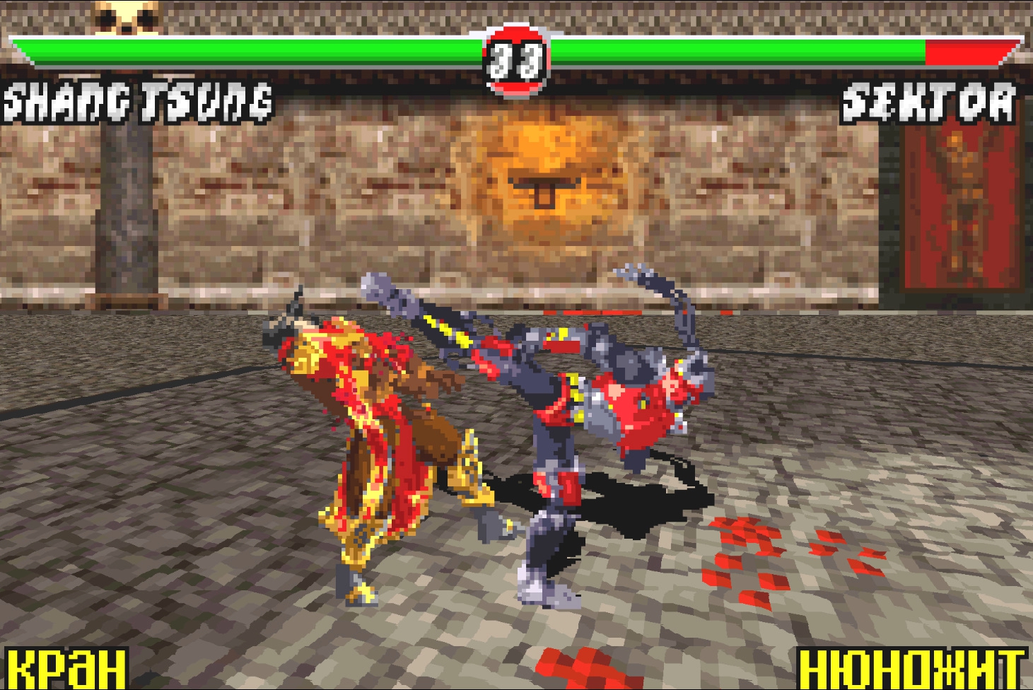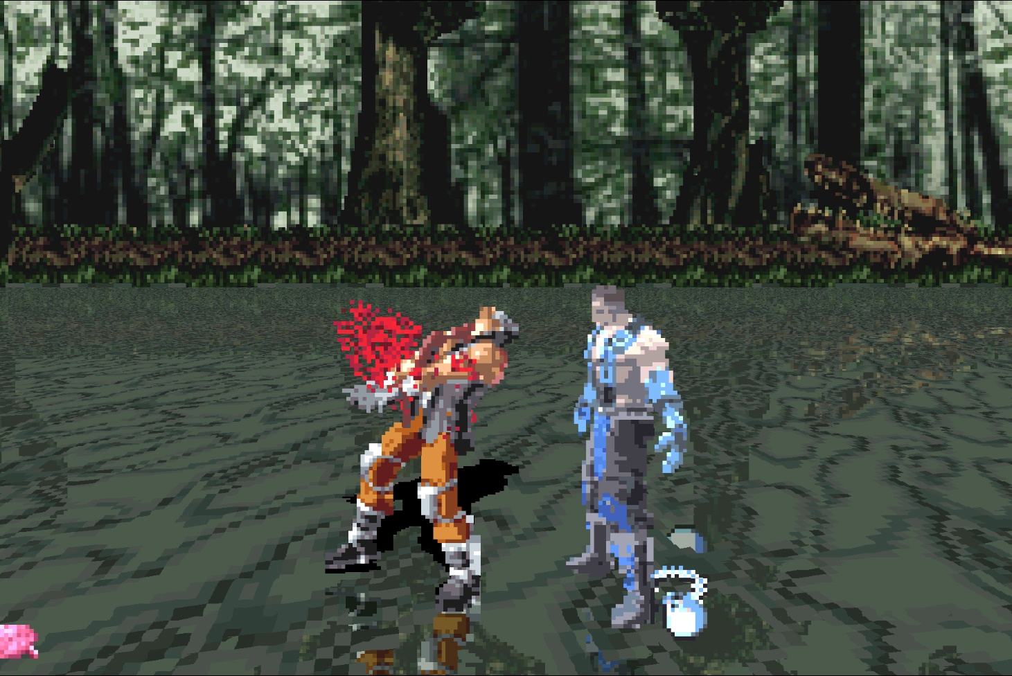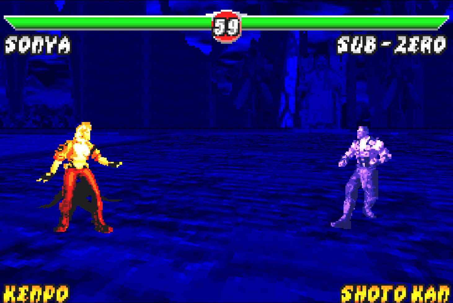 2. Сектор – появился в играх эпохи PlayStation 2 только в Armageddon, до этого в низкополигональном варианте его можно увидеть в режиме завоевания Deception. В целом, это попросту перекрашенный Сайрекс, однако спрайты не рисовались вручную, а вырезались из оригинальной игры и переносились в 2D. Иными словами, возможно, на ранних этапах разработки, либо в Deadly Alliance, либо в Deception, данный персонаж был в ростере.