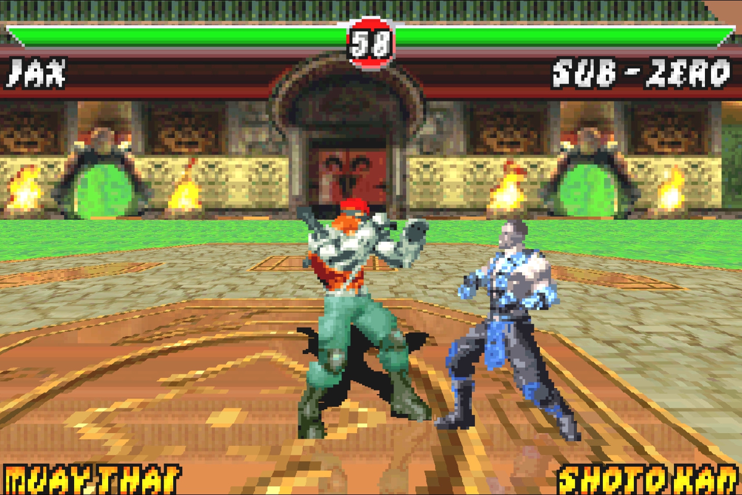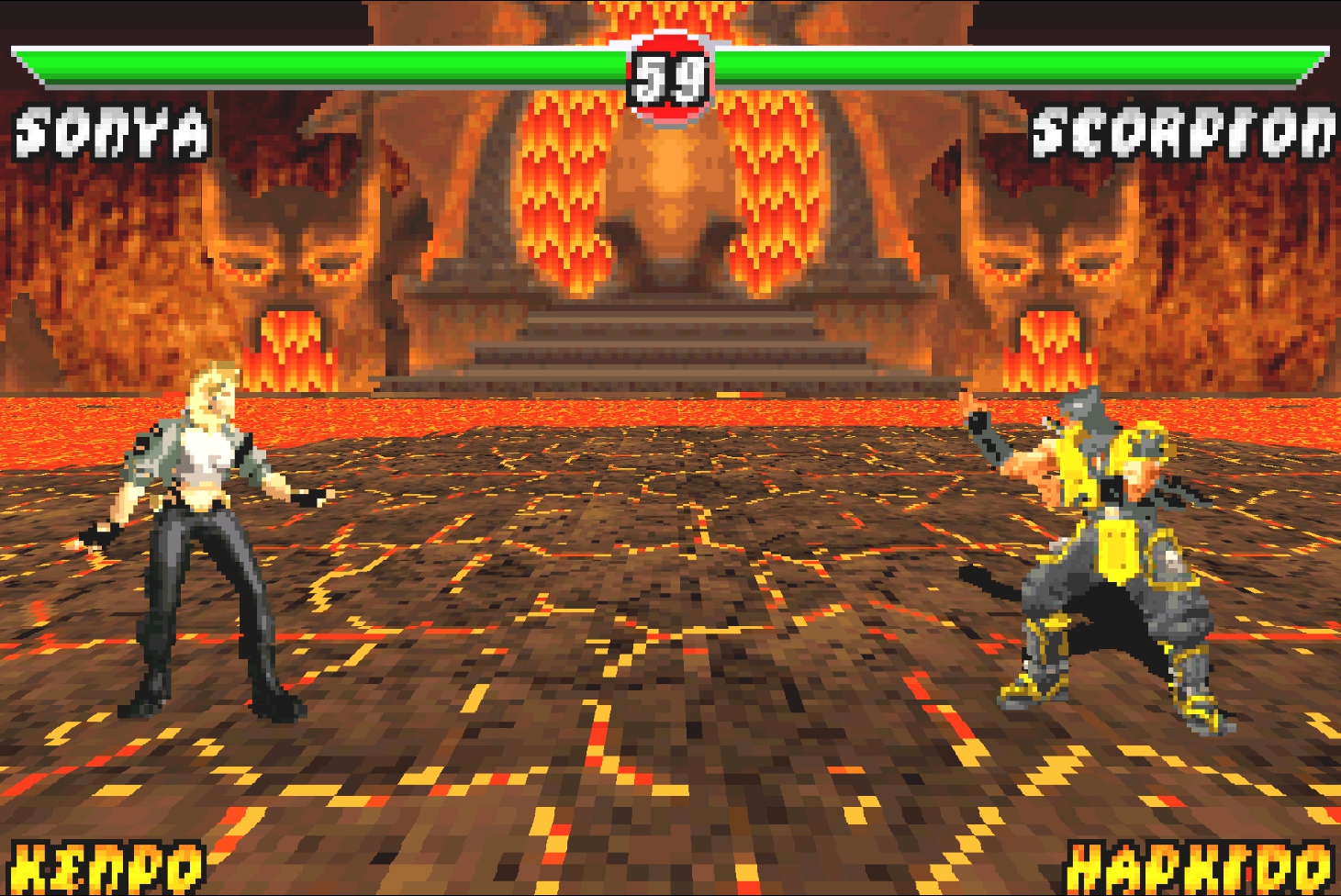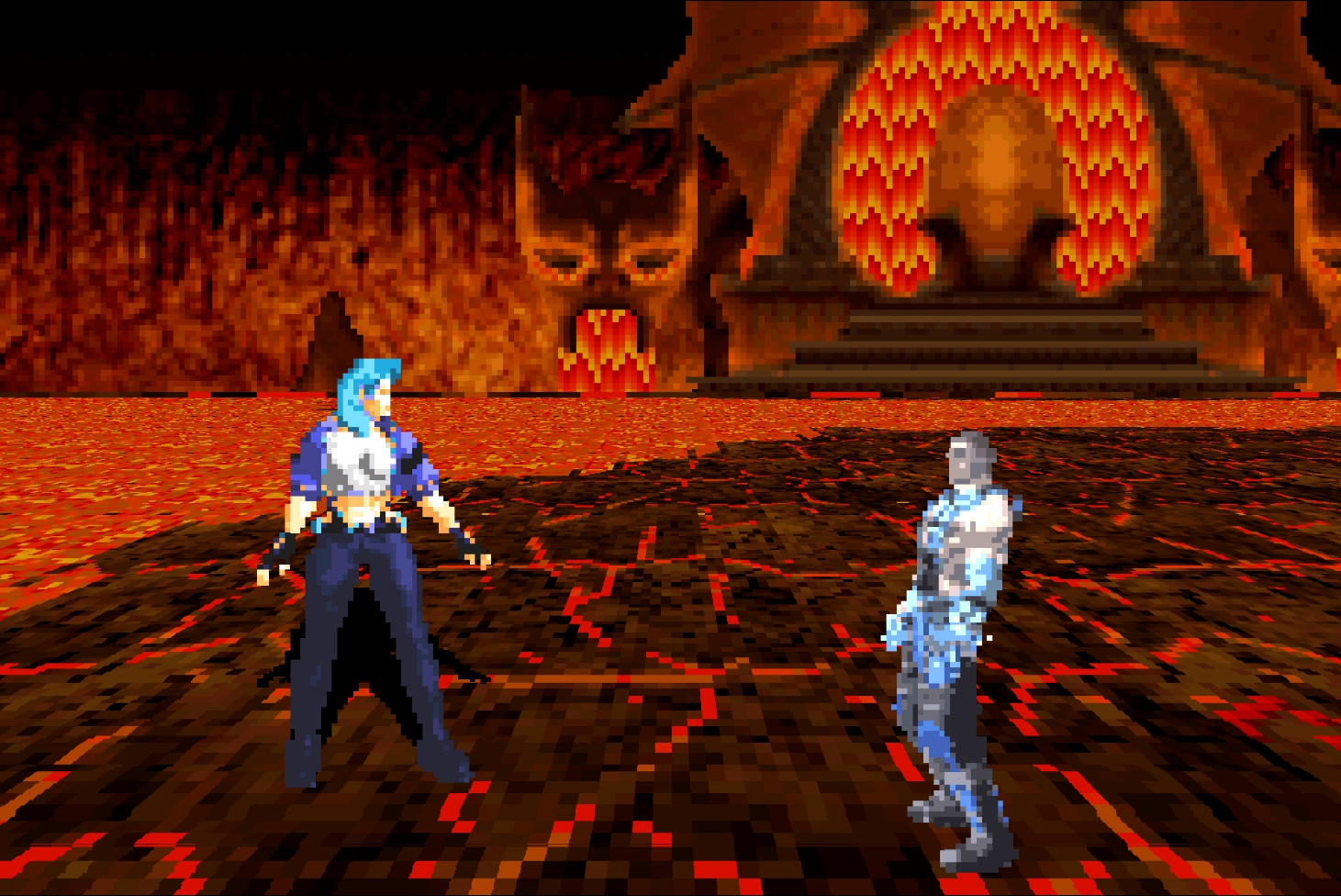 2. Сектор – появился в играх эпохи PlayStation 2 только в Armageddon, до этого в низкополигональном варианте его можно увидеть в режиме завоевания Deception. В целом, это попросту перекрашенный Сайрекс, однако спрайты не рисовались вручную, а вырезались из оригинальной игры и переносились в 2D. Иными словами, возможно, на ранних этапах разработки, либо в Deadly Alliance, либо в Deception, данный персонаж был в ростере.