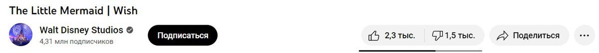 - Тизер «Русалочки» собрал почти 260 тысяч дизлайков при 33 тысячах лайков