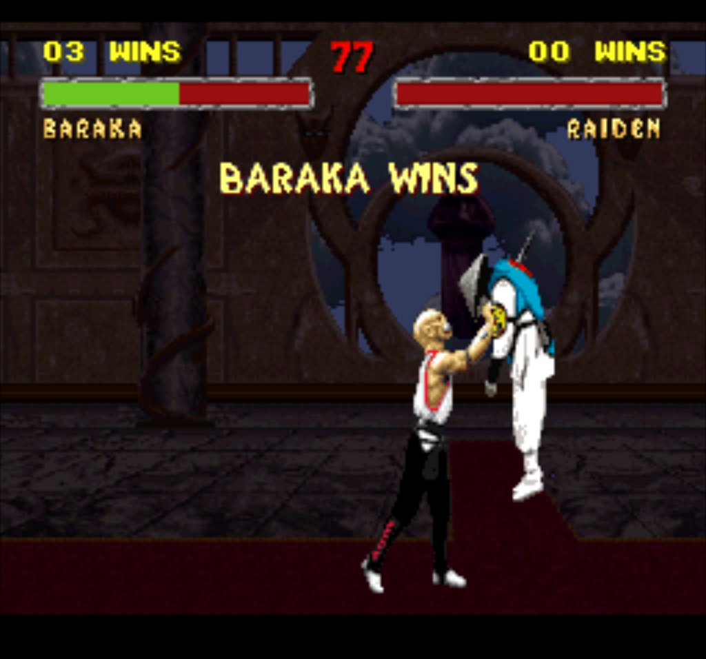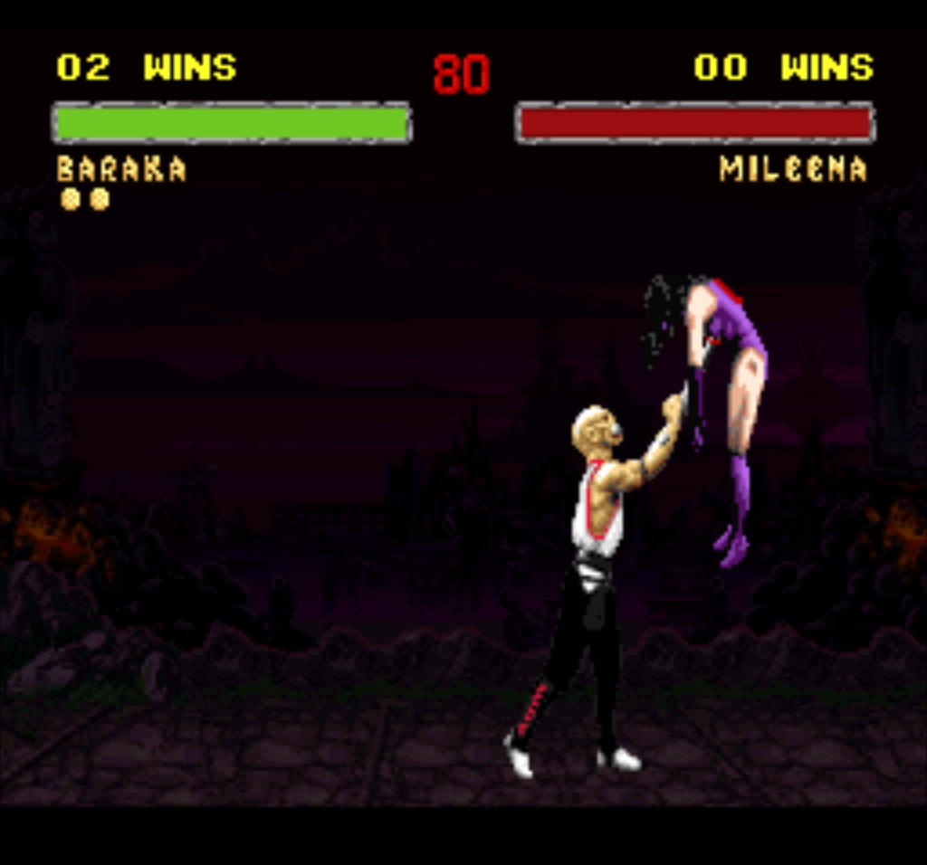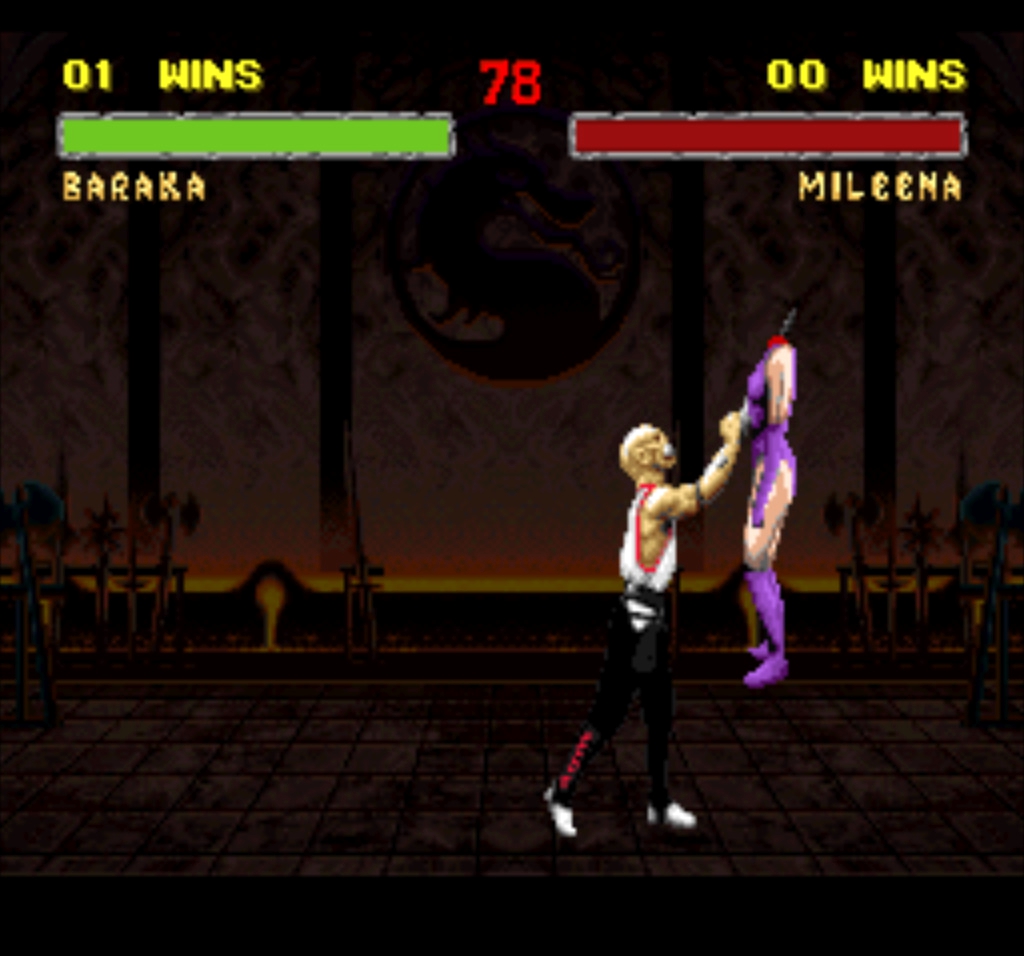 1. Барака постоянно парит в воздухе. Этот же глюк присутствует и во время боя, что делает Бараку практически неуязвимым, а также неповоротливым одновременно. Неуязвимым потому, что это не спрайт висит в воздухе, а персонаж и все атаки противника проходят по воздуху. А неповоротливым потому, что Барака во время некоторых приёмов всё-таки спускается на землю.