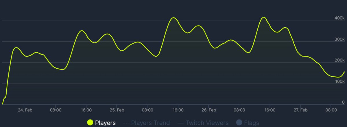 Для сравнения: в Steam-версию Hogwarts Legacy на старте играло больше 879 тысяч человек одновременно. Спустя пару дней после релиза онлайн в Hogwarts Legacy сократился до 310+ тысяч игроков в пике.