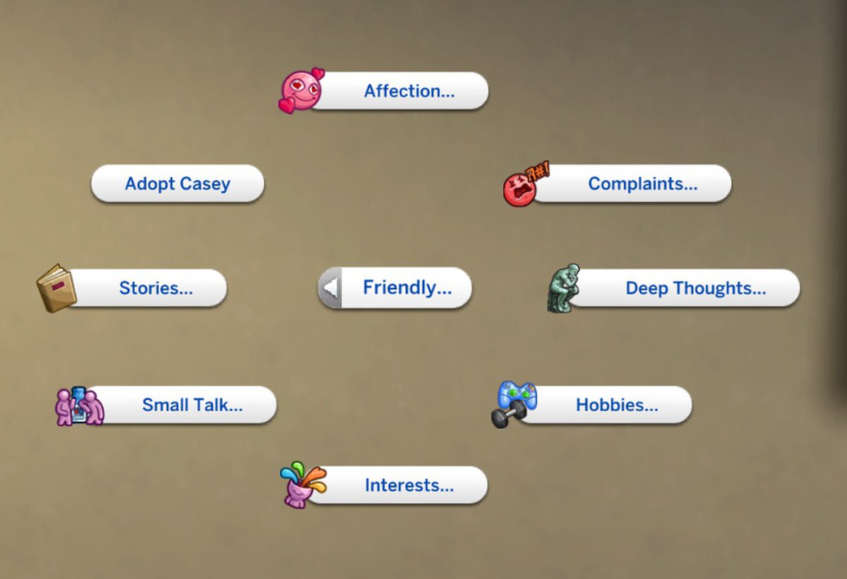 - Система симпатий и антипатий расширится: добавлены категории, касающиеся характеристик симов и тем для разговора. Некоторые из тем в этих категориях откроются только при взрослении сима.
