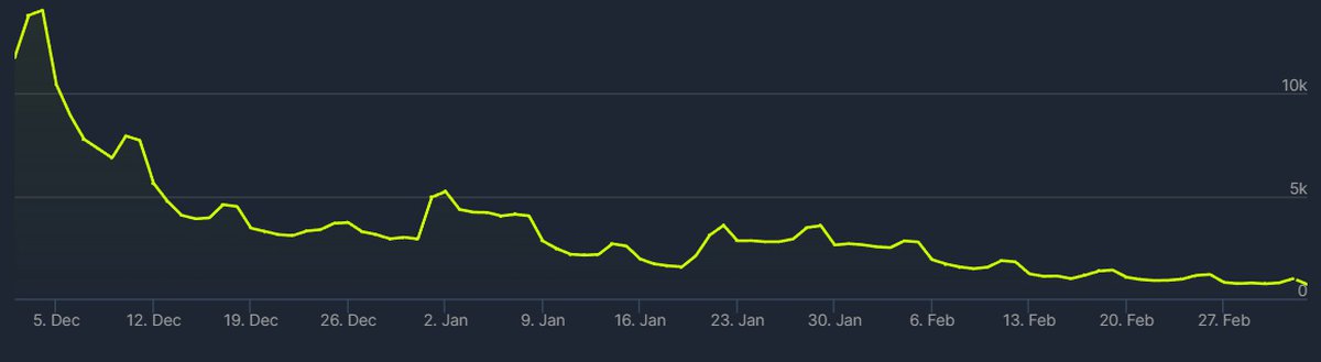 Пиковый онлайн в Steam-версии Need for Speed Unbound уже неделю не поднимается до уровня в 1000 человек. В последний раз игра демонстрировала такой показатель в конце февраля, 4 марта онлайн в Need for Speed Unbound достиг лишь 988 человек.
