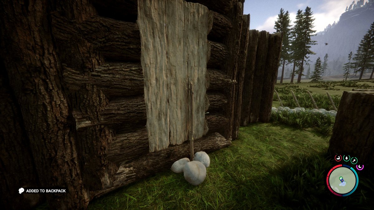 Для изготовления замка потребуется лишь палка и три камня, удерживающих ее на одном месте. Торчащая палка не даст двери пропустить каннибалов, а у монстров не хватит сообразительности, чтобы убрать камни и палку.