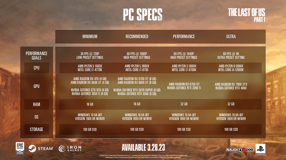 Разработчики PC-версии ремейка The Last of Us обновили системные требования игры, опубликованные 9 марта. В системных требованиях исправили опечатки и ошибки, в основном касавшиеся видеокарт.