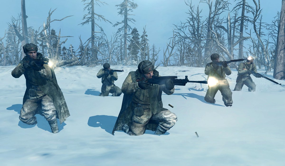 Однако если дело доходит до прогулки по заснеженному лесу, то все становится гораздо интереснее. Как ни странно валенки оказываются недостаточно теплыми, поэтому солдатики часто замерзают, после чего засыпают вечным сном в снежных дюнах. Если же такой ход событий в твои планы не входил, то нужно, перед началом бури, спрятать бойцов в теплой сталинке, или довести до КП, где их уже ждет докторская колбаса и 100 грамм водки.