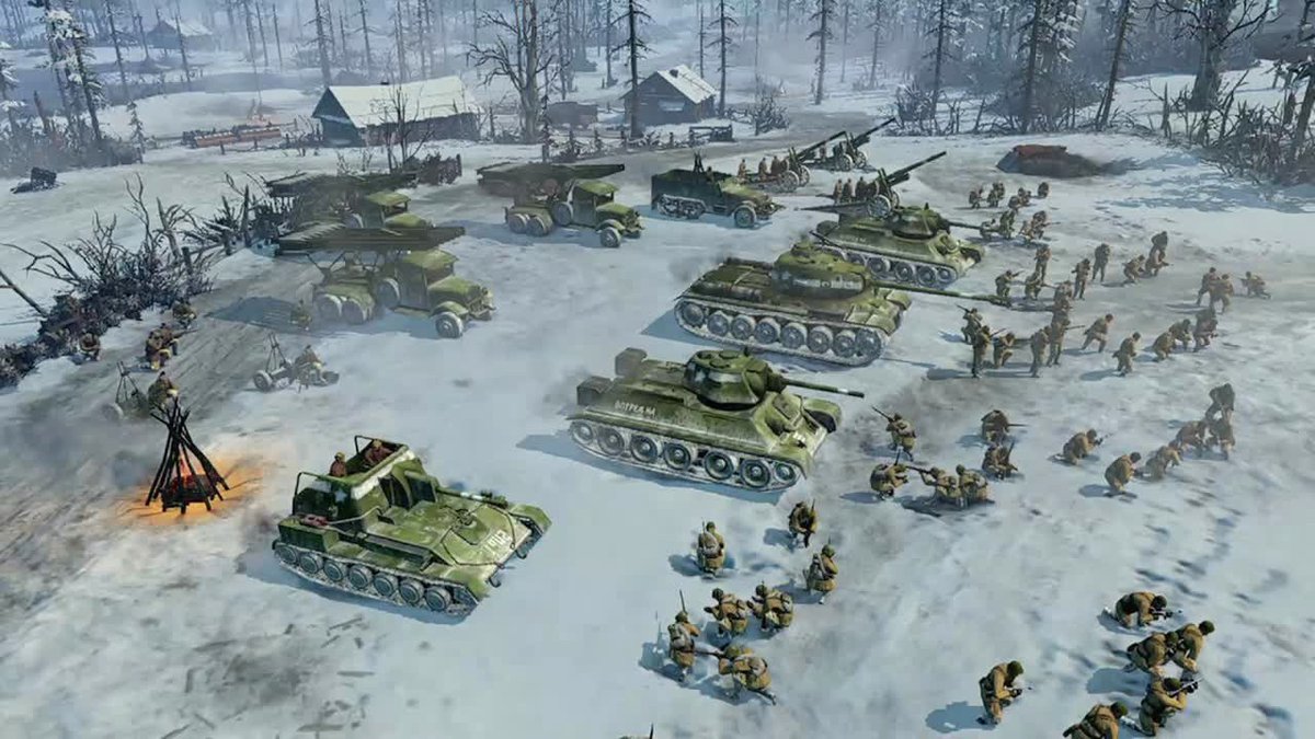 Что на самом деле хорошо реализовано в игре так это снег. Такой детальной реализации и его взаимодействия с окружающими миром в стратегиях еще не было. Если инженеры подожгли дом, или на поле боя загорелся танк, то в радиусе нескольких метров от него снег начнет таять. Погода теперь выступает в роли еще одного врага, способного преодолеть обе армии за раз.