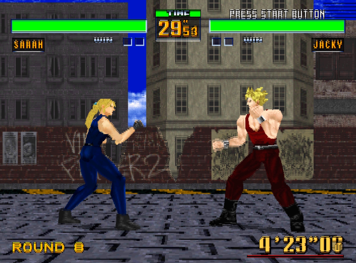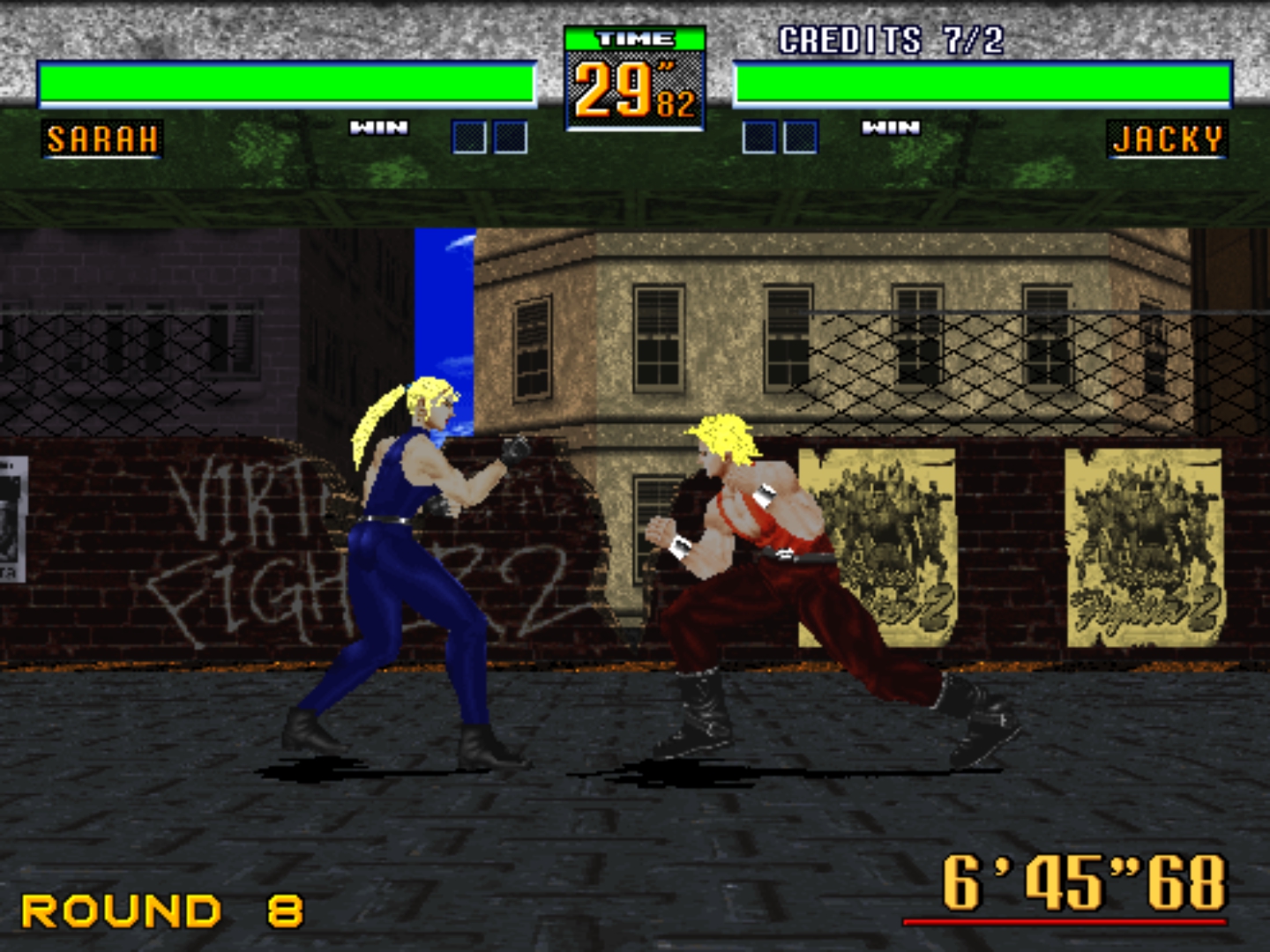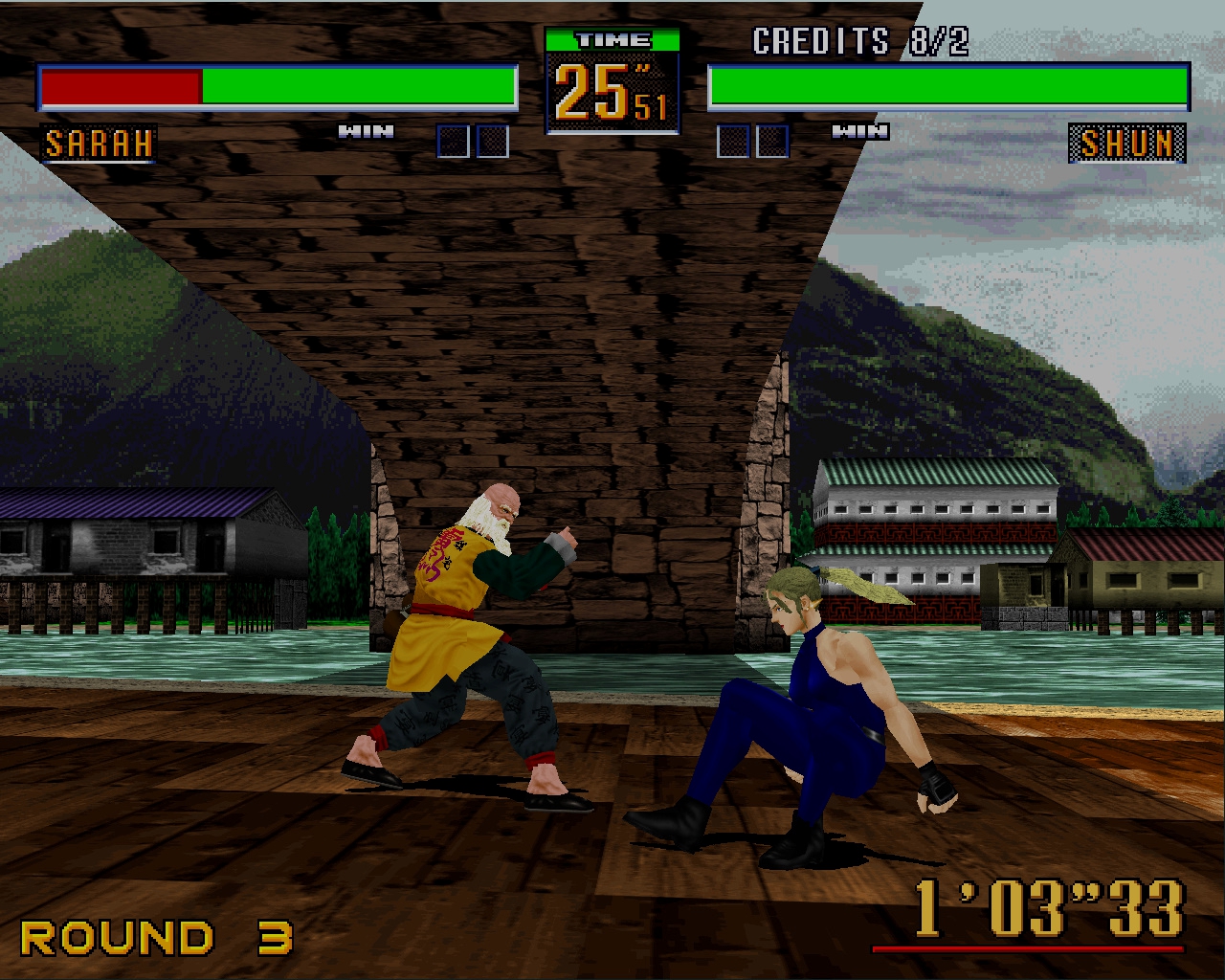 Что я считаю в итоге, в какую версию играть? Если вы хардкорный игрок и хотите самую сочную картинку из всех возможных – аркадную и её порты. Если же хотите просто ознакомится с игрой, не напрягаясь – Saturn (хотя его эмуляция сложный процесс, но вполне возможный). Если же вы извращенец и хотите изнасиловать свои глаза – покупайте версию для R-Zone, заодно пишите в комментариях свои ощущения. А если вы купили китайский клон Mega Drive – у вас по-любому будет либо Tekken, который является клоном Virtua Fighter 2, либо там сама эта игра и будет.