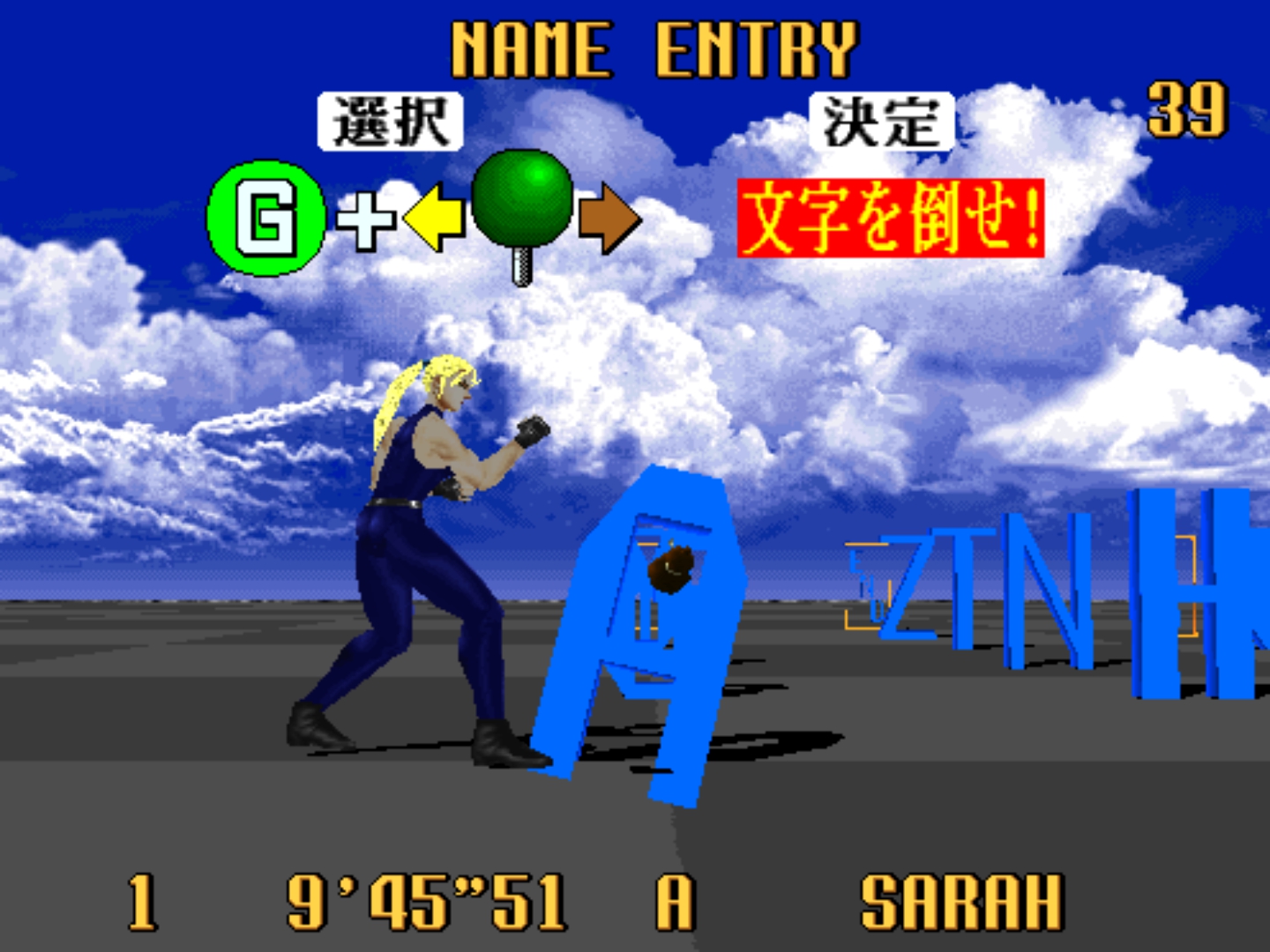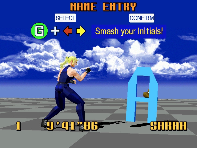 Последнее, чем отличается Saturn версия от аркадной – финал игры. Если в аркадной версии мы вводим три инициала, то в Saturn версии нам показывают рендер героя, за которого прошли аркаду. Позднее, это же отличие попало и в PC версию игры.