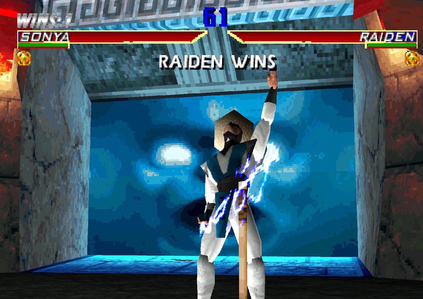 У Рейдена нет молнии во время победной позы.