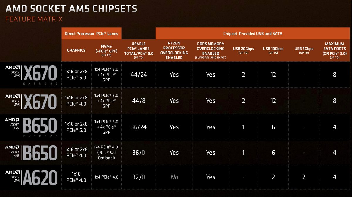 AMD советует осторожно выбирать бюджетные материнские платы на чипсете A620, если их планируется использовать с топовыми процессорами. В компании объясняют, что чипсет A620 гарантированно поддерживает только процессоры с TDP до 65 Вт включительно.