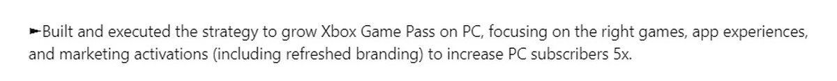 По всей видимости, в какой-то момент PC заметно отставал от Xbox по количеству подписчиков. Затем Microsoft удалось увеличить число подписчиков Game Pass на PC в 5 раз; по словам Скварски, помог правильный подбор игр и удачные маркетинговые активности.