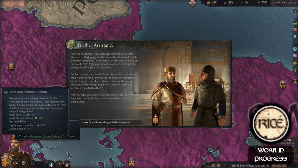 Regional Immersion and Cultural Enrichment - это мод для Crusader Kings 3, добавляющий в игру больше регионального колорита. Автор старался закончить нормандский набор сначала к концу февраля, потом к концу марта, но в итоге обновление вышло сегодня.