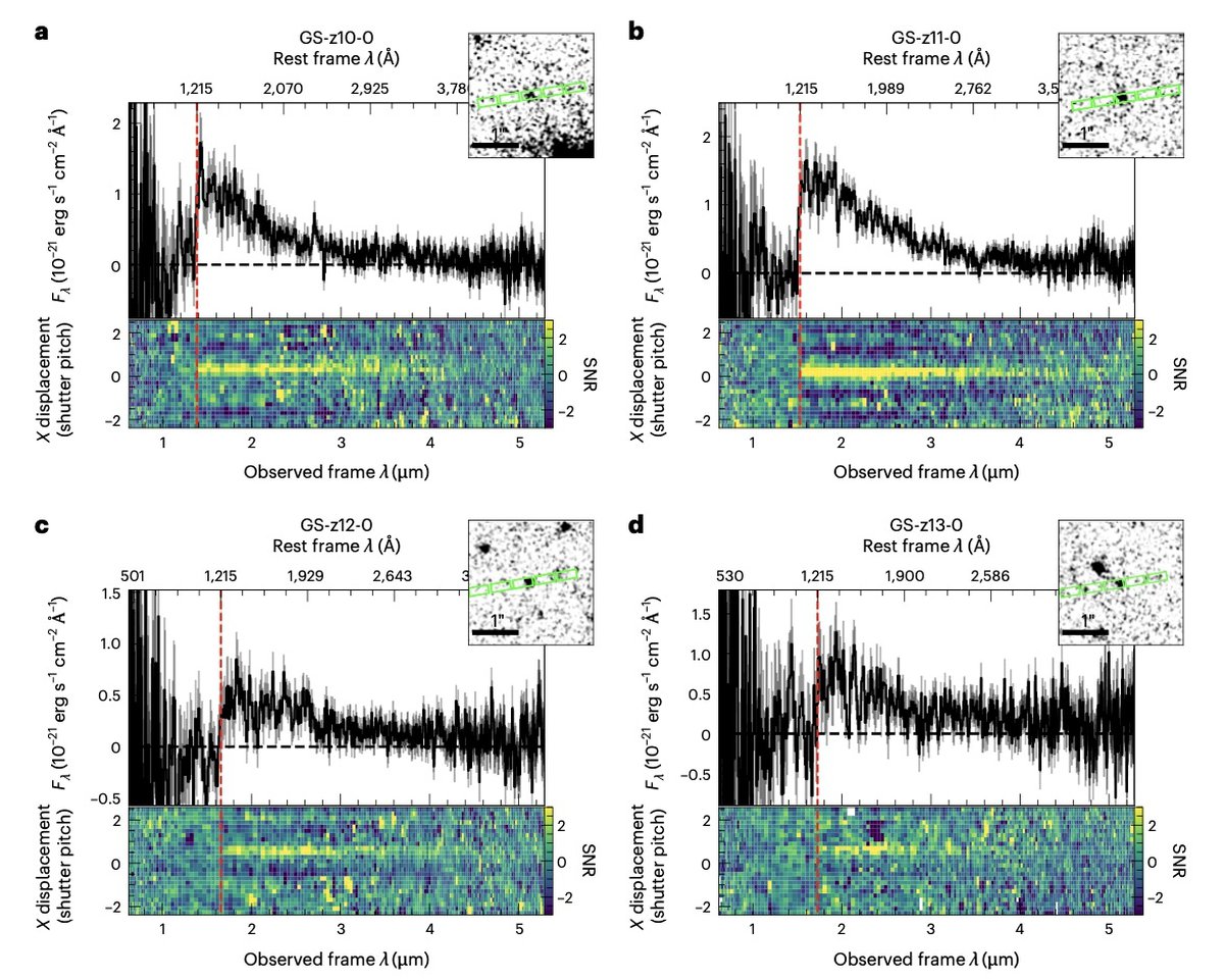 Для определения возраста галактик использовалась спектроскопия во всех четырех спектрах. Информация была получена с помощью спектрографа NIRSpec, имеющегося на борту телескопа.