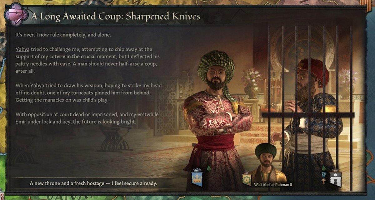 Решение о начале переворота стоит тысячу престижа, а правитель должен быть на месте, чтобы свергнуть его демонстративно.