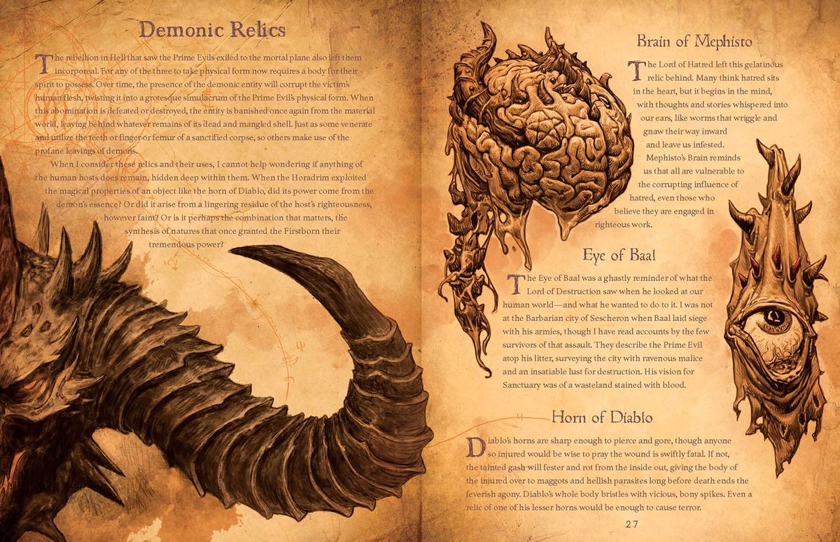 В частности, хорадримы хранят глаз Баала, рог Дьябло и мозг Мефисто. Судя по концепту, рога Мефисто были встроены непосредственно в мозг.
