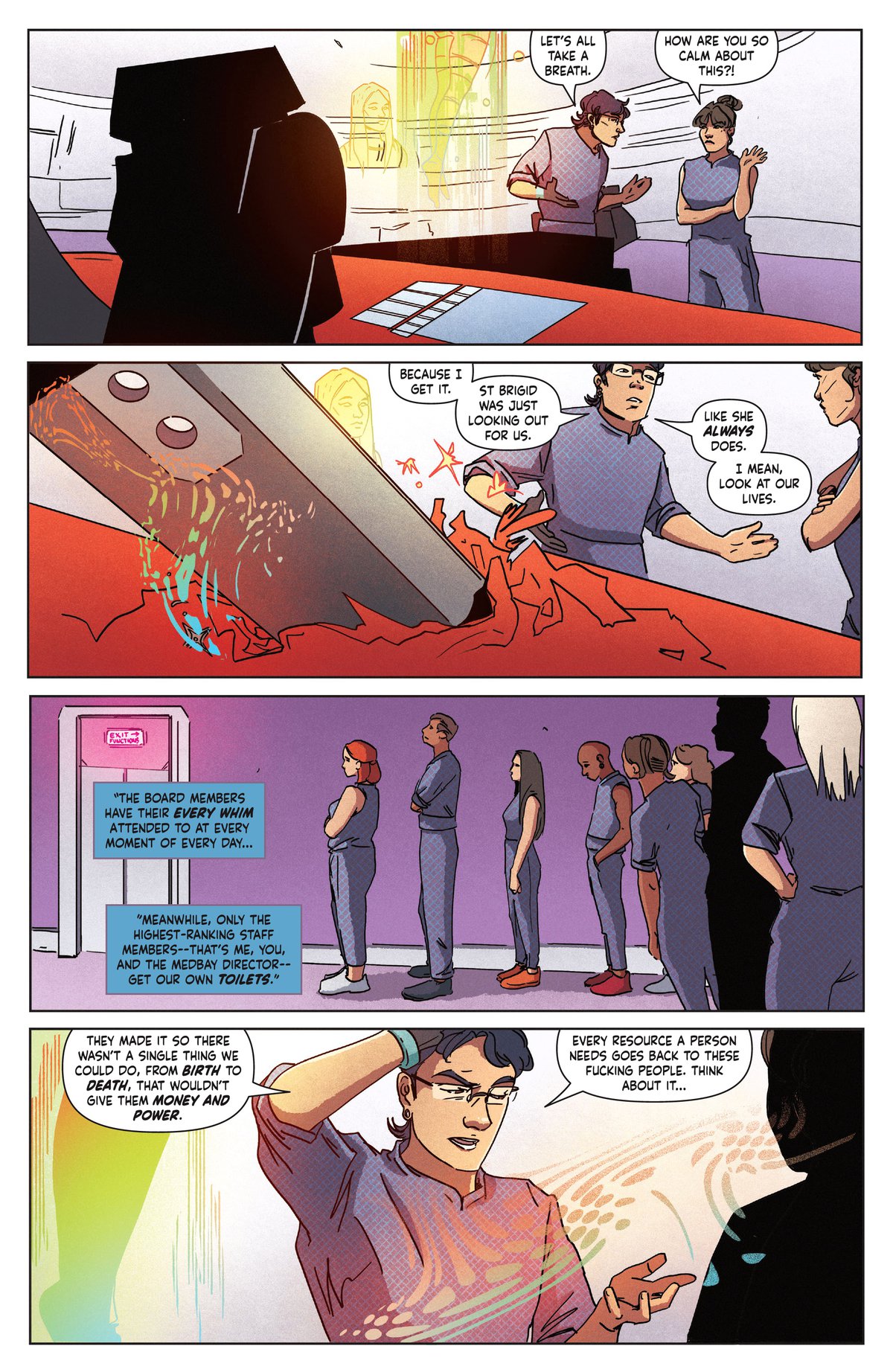 Комикс как бы даёт и не даёт ответ. В финале случается не просто переворот, а социалистическая революция. Теперь все услуги и ресурсы станции в распоряжении рабочих.