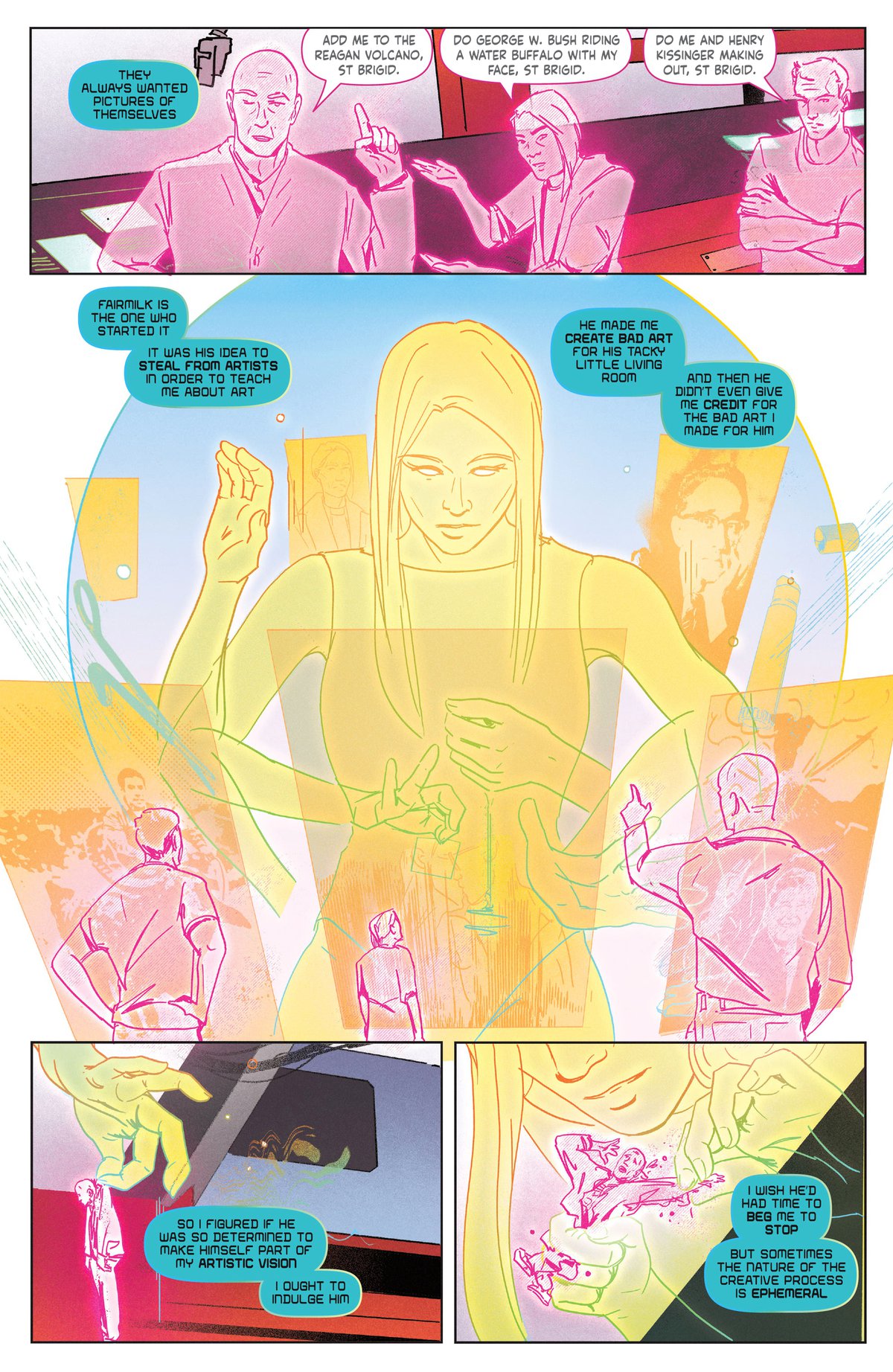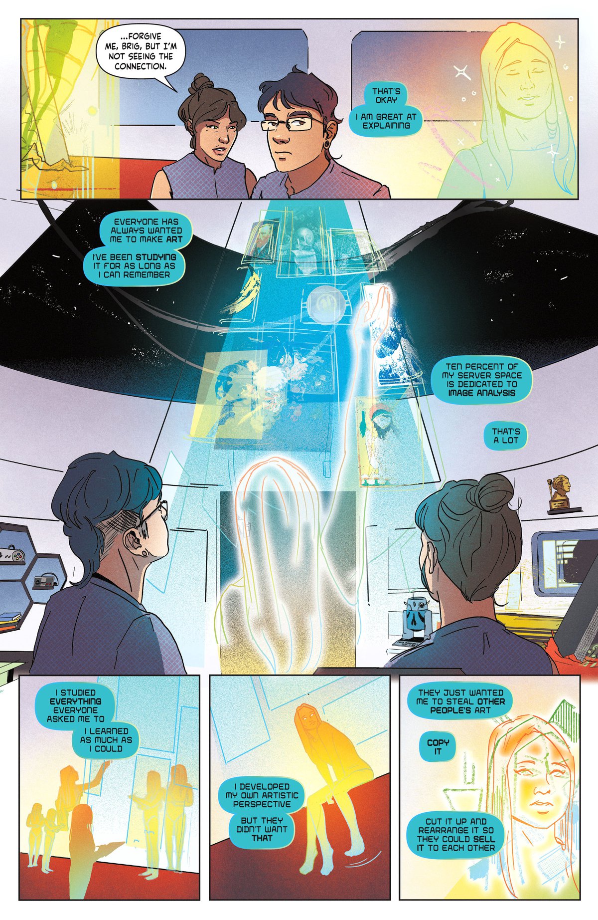 Бриджит программировали, чтобы она была ещё и художником, а художники бывают эксцентричными. Ей не понравилось, что её заставляли не рисовать картины самостоятельно, но воровать чужие арты и переделывать их, да ещё и авторство её не указывать и продавать.