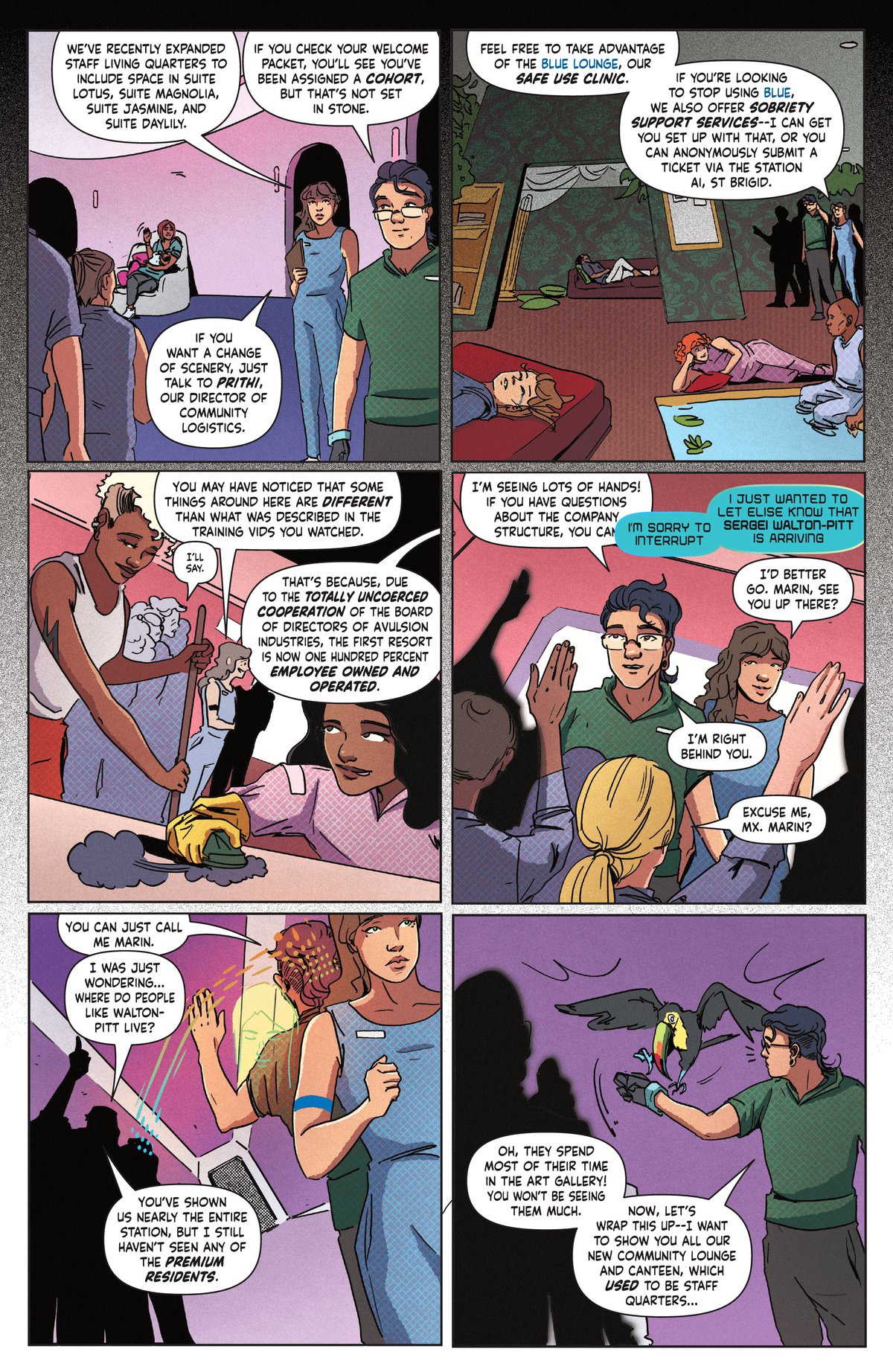 На протяжении чтения всех выпусков у читателя мог возник логичный вопрос - на чём держится власть богачей станции? Полиции нет, за безопасность отвечает эта наркоманка Элис. Почему управляющие персоналом не могут сместить владельцев корпораций и захватить всё?