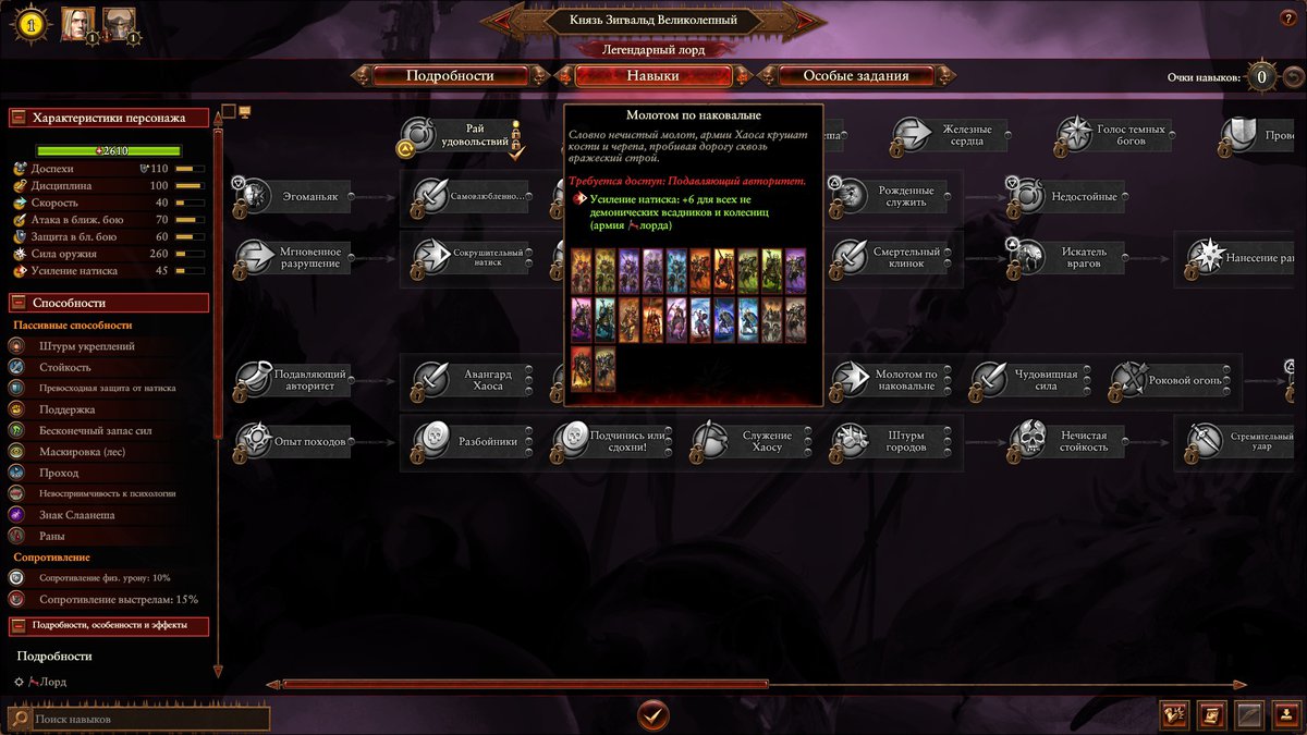 В меню прокачки теперь показано, на какие юниты действуют навыки. Особенно для Воинов Хаоса полезно, ибо игроки получат ответ, что есть демонические всадники и колесницы, а что недемонические чудища и монстры.