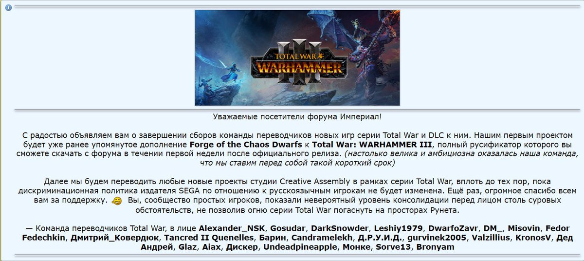 - Сообщество форума Империал анонсировало локализацию грядущих дополнений Total War: Warhammer 3