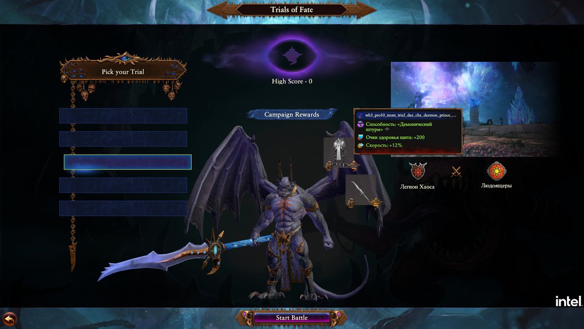 Второй - Испытания Судьбы. Здесь предстоит за Демона Принца сыграть особые битвы. В них можно получить награды - тзинчитские части тела для Демона Принца, которые можно будет использовать в Царствах Хаоса и Бессмертных Империях.