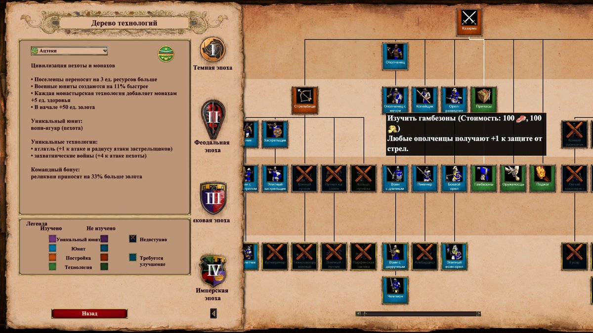 Но не все народы смогут познать эту мощь. Апгрейд доступен ацтекам, бенгальцам, болгарам, бирманцам, византийцам, кельтам, дравидам, франкам, японцам, корейцам, малайцам, персам, португальцам, сарацинам, сицилийцам, славянам, испанцам, германцам и викингам. Остальным нет. Кстати, у фламандских ополченцев бургунцев такой бонус итак был, но теперь убрали.
