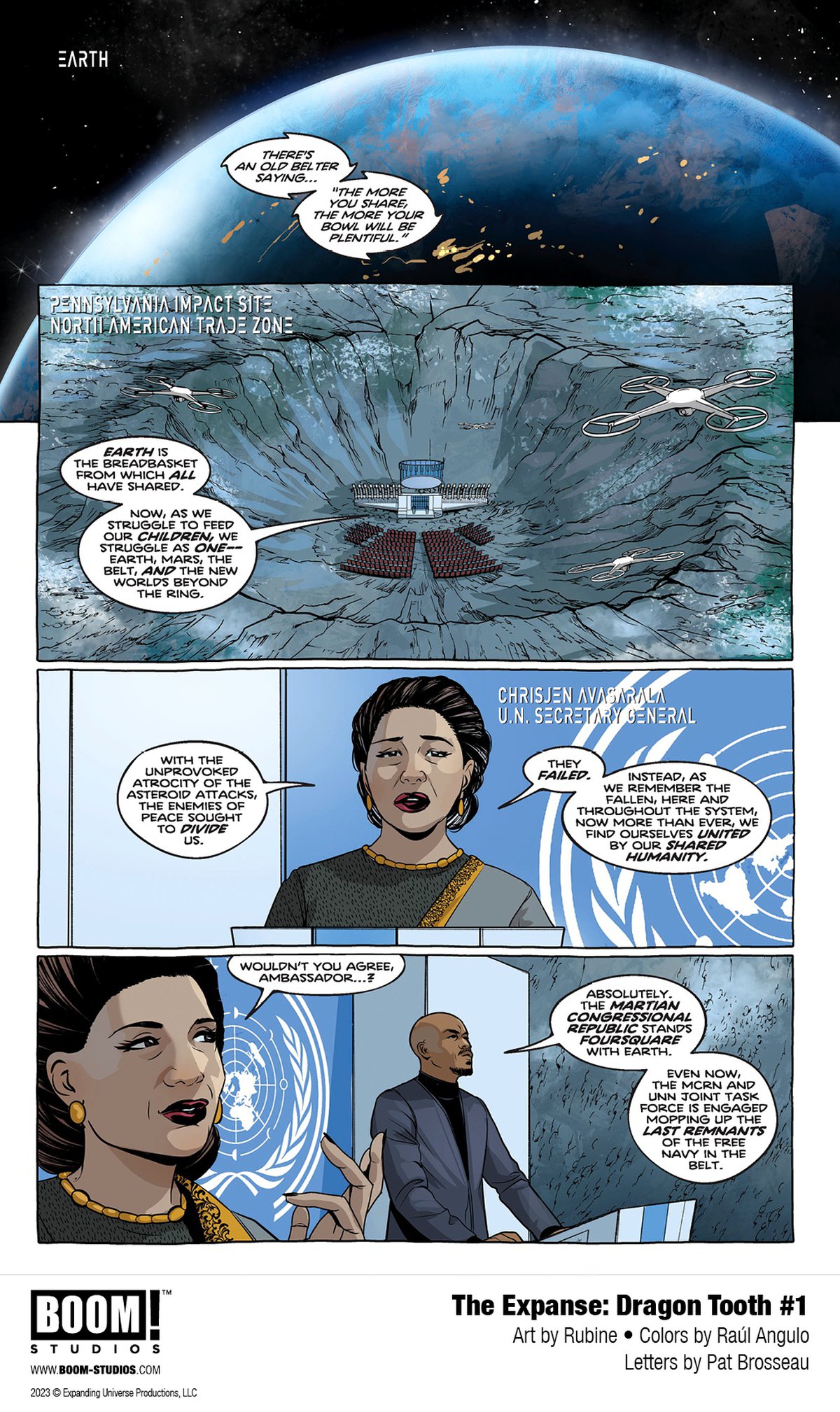 The Expanse: Dragon Tooth - комикс серия из 12 номеров, являющаяся продолжением завершившегося сериала Пространство. Действие будет идти после 6-ого сезона. Пишет Энди Диггл, рисует художник с псевдонимом Rubine, красит Рауль Ангуло.